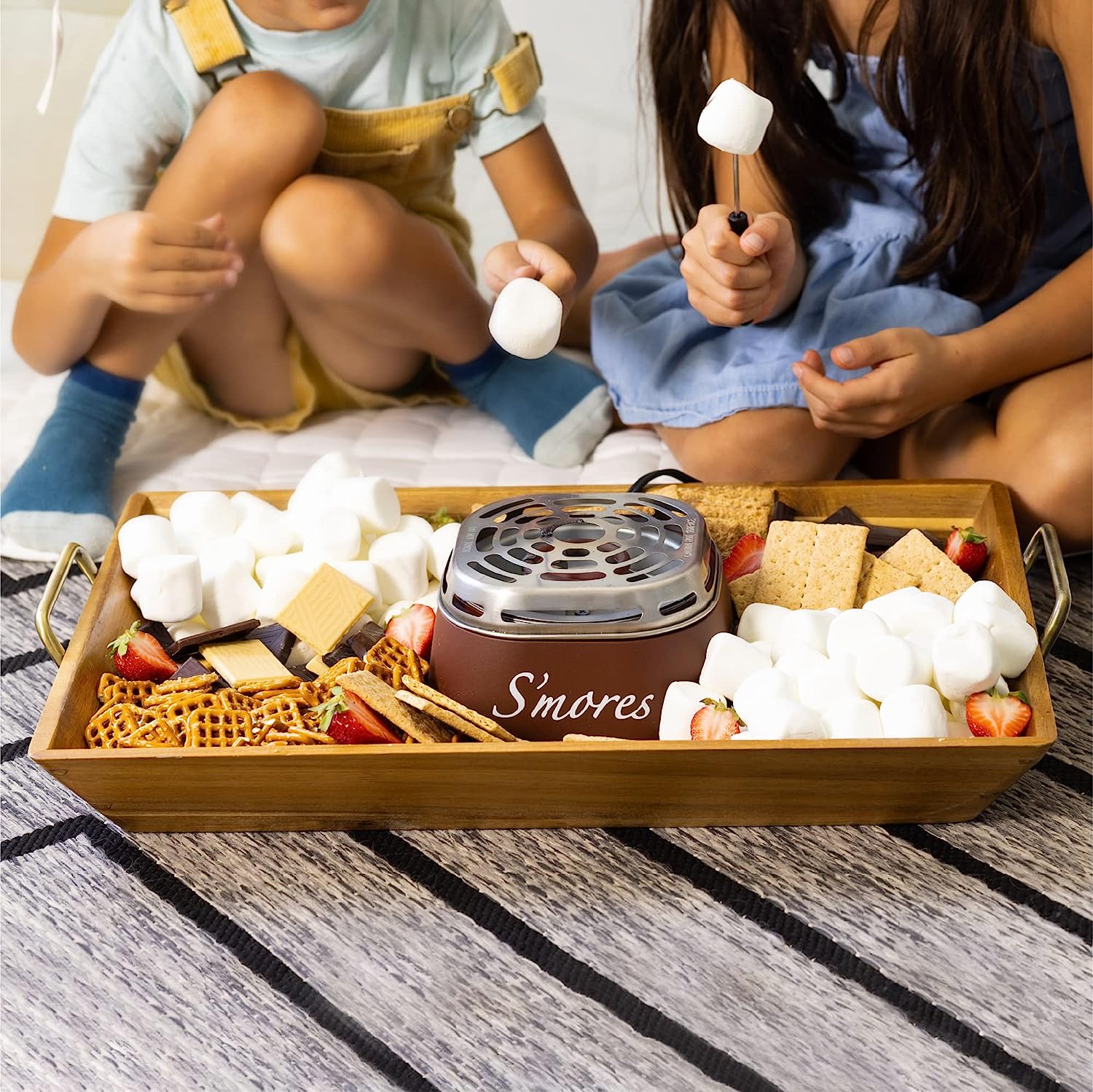 Skip the hassle of building a bonfire and bring the taste of the campfire right into the kitchen with our Indoor Electric S'mores Maker. Build the smores station of your dreams and fill the compartment tray with marshmallows, chocolate, graham crackers, and chocolate chip cookies. This table top smores maker makes any event worth celebrating. Easily set up a s'mores station during parties, family gatherings, or for a cozy indoor camping site.
