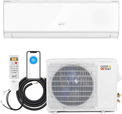 COSTWAY 18000 BTU Wifi Enabled Mini Split Air Conditioner & Heater, Energy Efficient, 21 SEER2 208-230V Inverter AC Unit Cools up to 1250 Sq. Ft.(White, 18000BTU, 208-230V, 21 SEER2-WIFI)