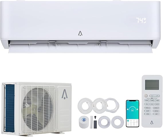 Split Air Conditioner, 9000 Btu Mini Split Ac/Heating System, Inverter Ductless Air Conditioner w/Alexa, Installation Kits, 115V Ac Unit Cools Room Up to 450, 23 Seer2 Sq. Ft (9000Btu/115V WIFI)