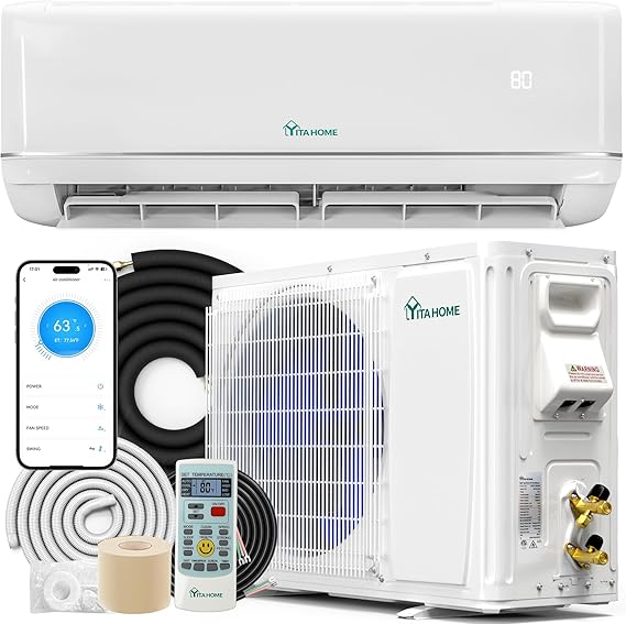 YITAHOME 18000 BTU Mini Split Air Conditioner Heat Pump System, Wifi Enabled 21 SEER2 208-230V Ductless AC Cool Up to 1250 Sq. Ft, Compatible with Alexa, Installation Kit, White