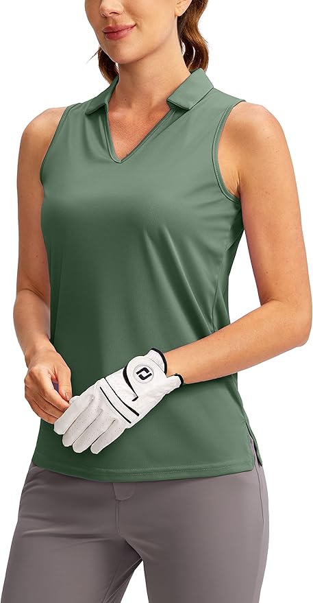 SANTINY Women's Sleeveless Golf Shirt V-Neck Tennis Tank Tops Collared Golf Polo Shirts for Women