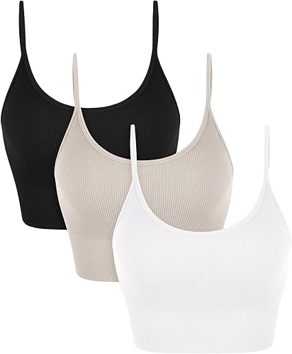 ODODOS Seamless Sports Bra for Women Ribbed Camisoles Non Padding Yoga Bra Crop Tank Tops