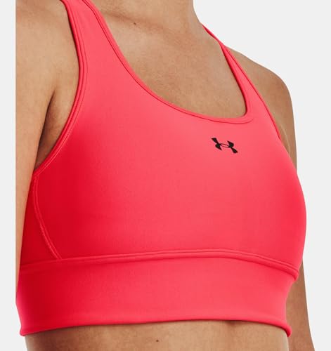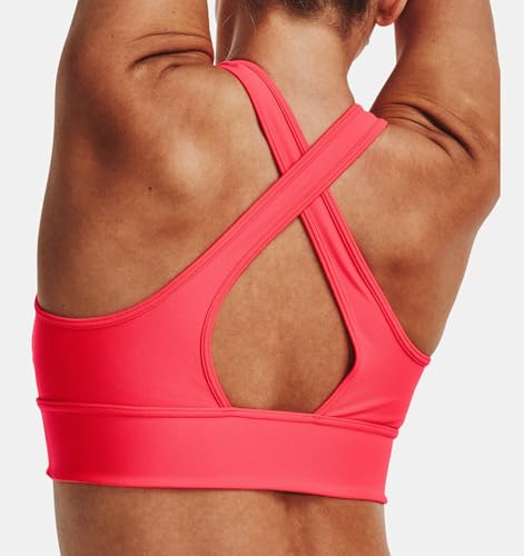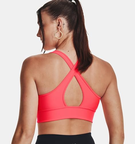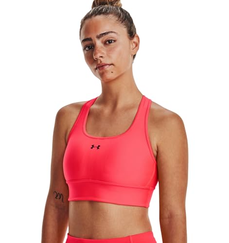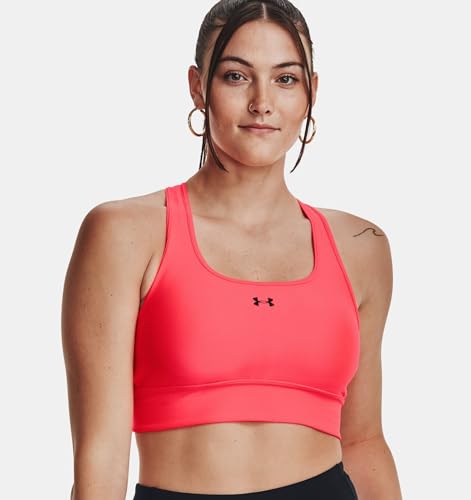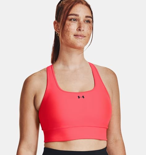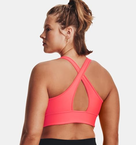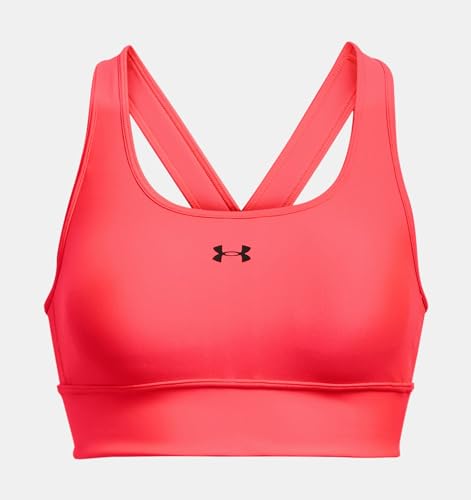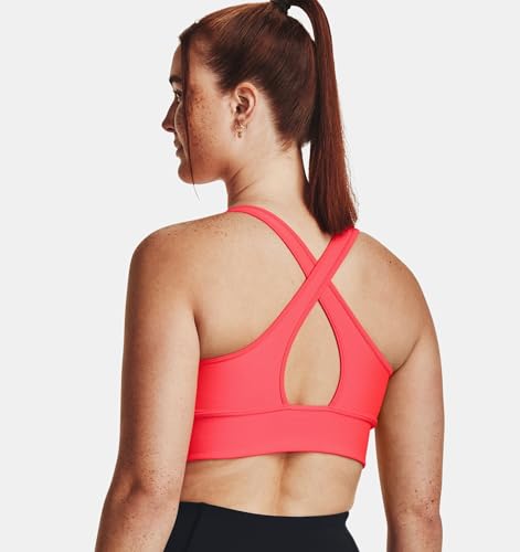 Details: Bras shouldn't be complicated. They should be comfortable, and they should be supportive. So, we went straight to the source and asked real women how to make their favorite UA bra even better. And it worked.. Delivers strategic support, tailored for medium-support activities like cycling, weight training & boxing. Soft, quick-drying cups provide extra structure & coverage with perforations for added breathability. Removable cups with Right & Left labels. Crossover straps with updated keyhole detail for easier on/off. Updated interior construction helps keep pads in place—during wear & wash. Longer body length for added coverage with smooth, super-comfortable elastic band. Super-smooth, double-layer HeatGear® fabric delivers superior next-to-skin feel. Material wicks sweat & dries really fast. Remove pads before washing. 87% Polyester/13% Elastane.