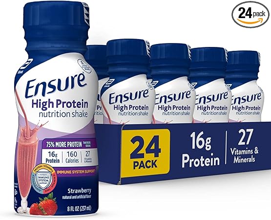 Ensure High Protein Nutritional Shake, 16g Protein, Meal Replacement Shakes, With Nutrients to Support Immune System Health, Strawberry, 8 Fl Oz (Pack of 24)