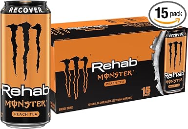 Monster Energy Rehab Peach Tea + Energy, Energy Iced Tea, Energy Drink, 15.5 Ounce (Pack of 15)