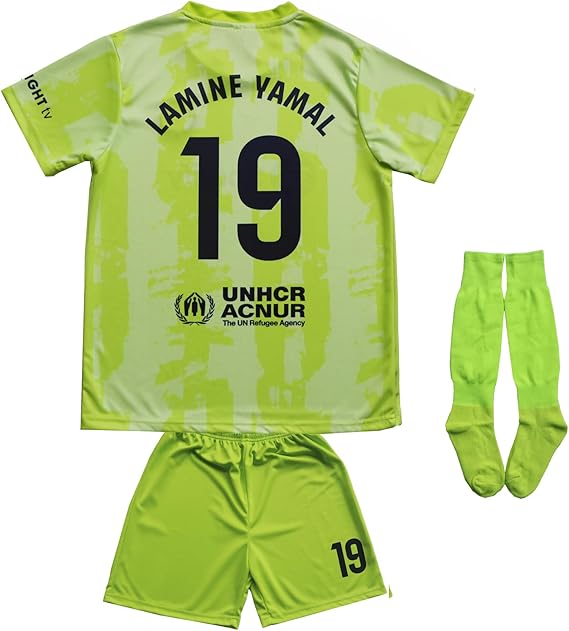 2024/2025 Barca Third #19 Lamine Yamal Football Soccer Kids Jersey Shorts Socks Set Youth Sizes