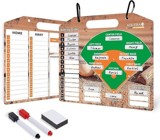 AOLEBA Baseball Lineup Board for Dugout, Dry Erase Magnetic Metal Baseball Clipboard for Coaches with 30 Lineups Cards