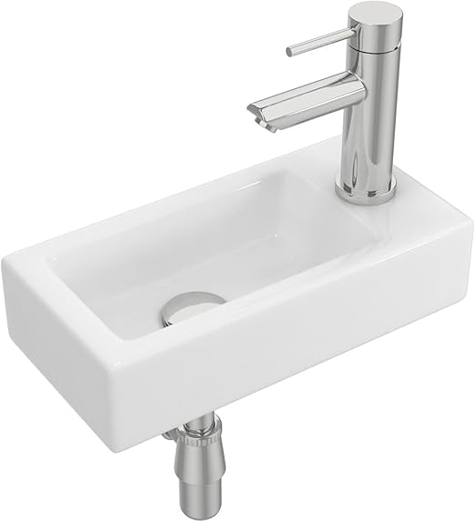J-FAMILY Small Wall Mount Bathroom Sink Rectangle Porcelain Ceramic Mini Vanity Vessel Sink Small Wash Hand Basin, Right Hand