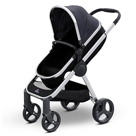 2 in 1 Convertible Baby Stroller, Folding High Landscape Infant Carriage, Newborn Reversible Bassinet Pram, Adjustable Canopy, Anti-Shock Toddler Pushchair Dark Grey