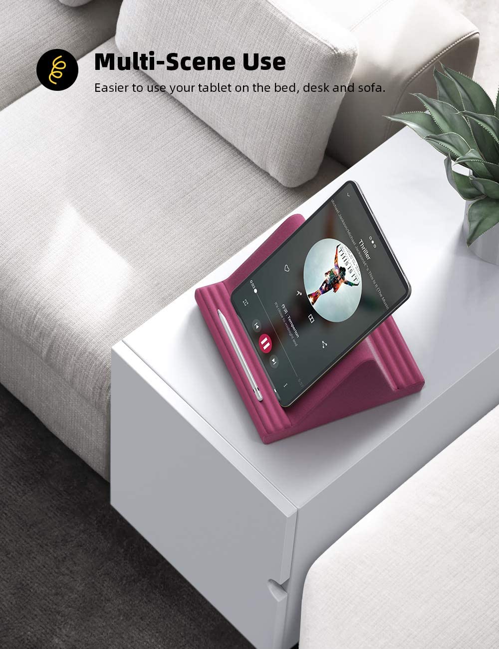 • 【 New Design】 Nice buddy on bed and sofa. This triangle pillow tablet & phone stand can use two tablets at the same time, do what you like to do, enjoy a fun time with you friends and family. ❗Since the pillow is vacuum-compressed, please place it for 6-24 hours after receiving it to restore its normal shape or put it in the dryer for 20 minutes to puff it.❗