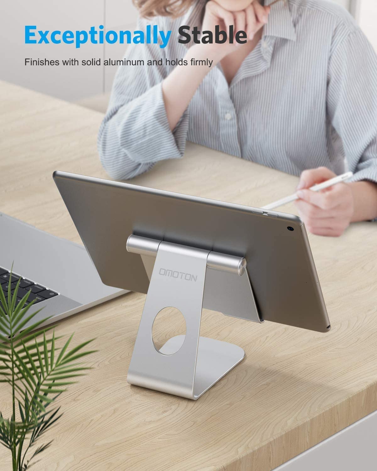 OMOTON Tablet Stand Holder Adjustable, T1 Desktop Aluminum Tablet Dock Cradle Compatible with iPad Air/Mini, iPad 10.2/9.7, iPad Pro 11/12.9, Samsung Tab and More, Silver