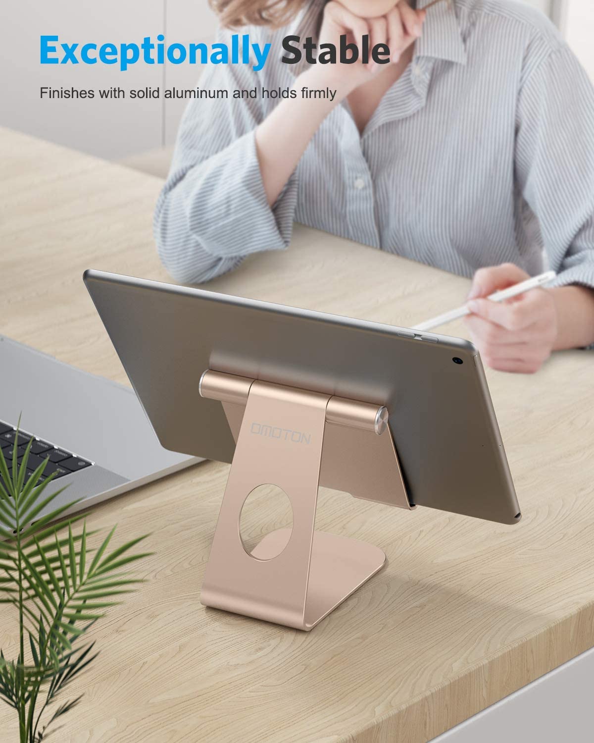 • Multi-Angle: This adjustable tablet stand can hold your tablet horizontally or vertically and meet your demands of multiple viewing angles when using the tablet.