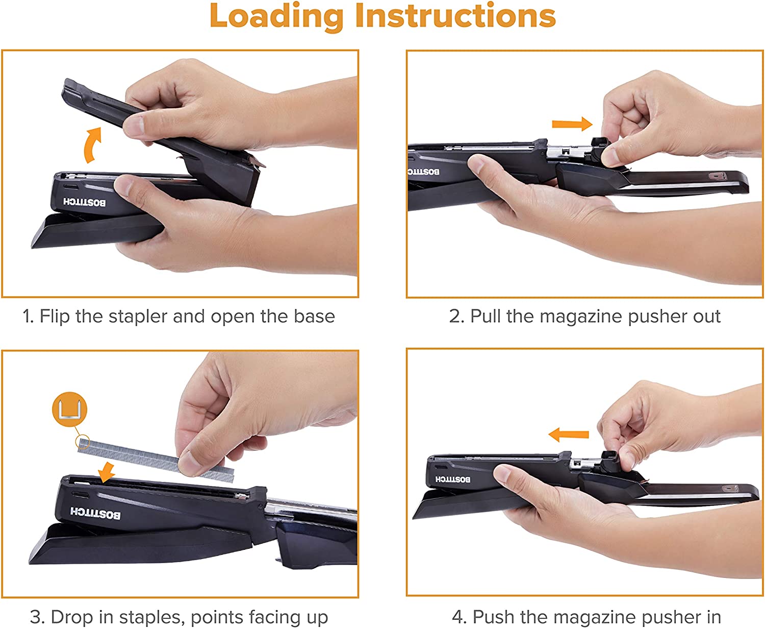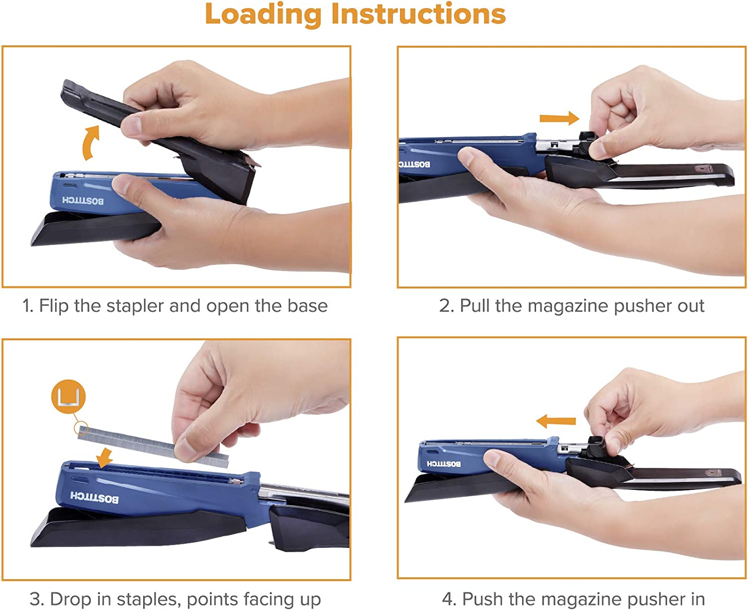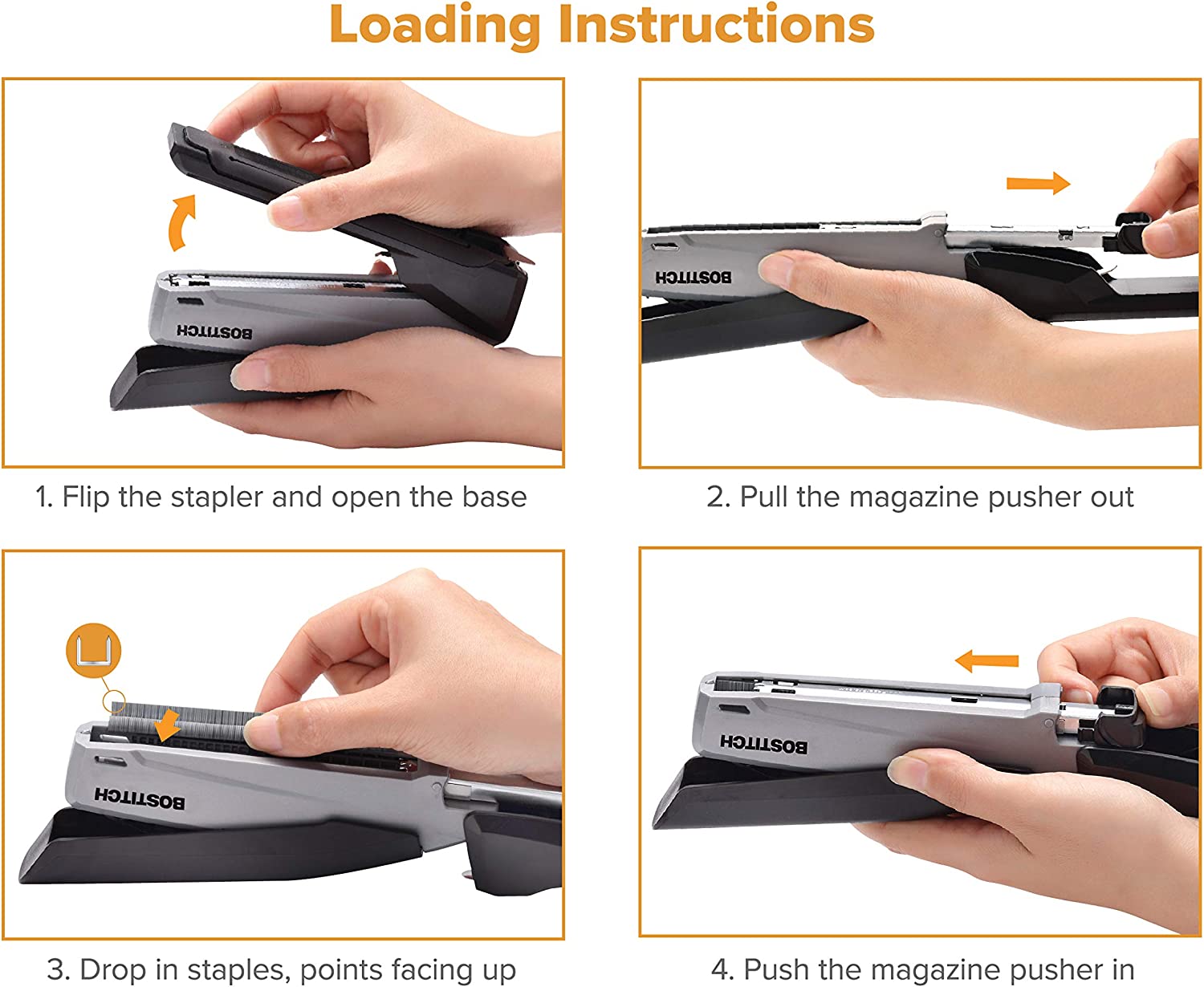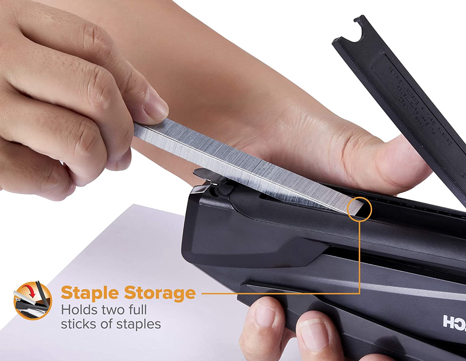 Effortless performance from a stapler that’s 80% easier to use: use just one finger to staple up to 20 Sheets of paper. Designed for convenience, it features a built-in staple remover for quick fixes and a hidden staple storage compartment to keep extra staples handy. Jam-free operation allows for smooth stapling of up to 20 Sheets. Opens for bulletin board tacking and crafting. Stands vertically or horizontally for easier access and storage. USES premium standard staples. Perfect for school, work, or the home office.
