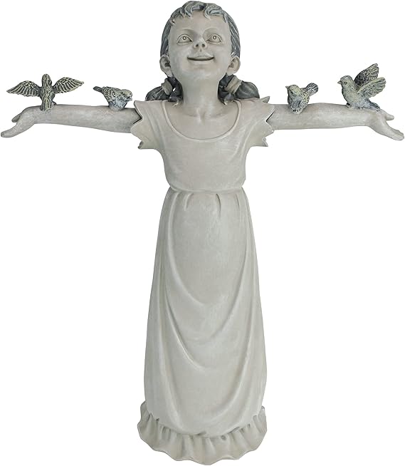 Design Toscano NG34012 Basking in Glory Little Girl Birds Outdoor Garden Statue, Medium, Handcast Polyresin, Two Tone Stone Finish