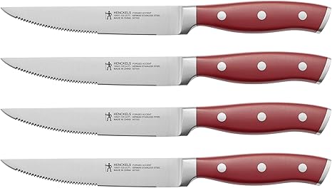 HENCKELS Forged Accent Razor-Sharp Steak Knife Set of 4, Red, German Engineered Knife Informed by over 100 Years of Mastery