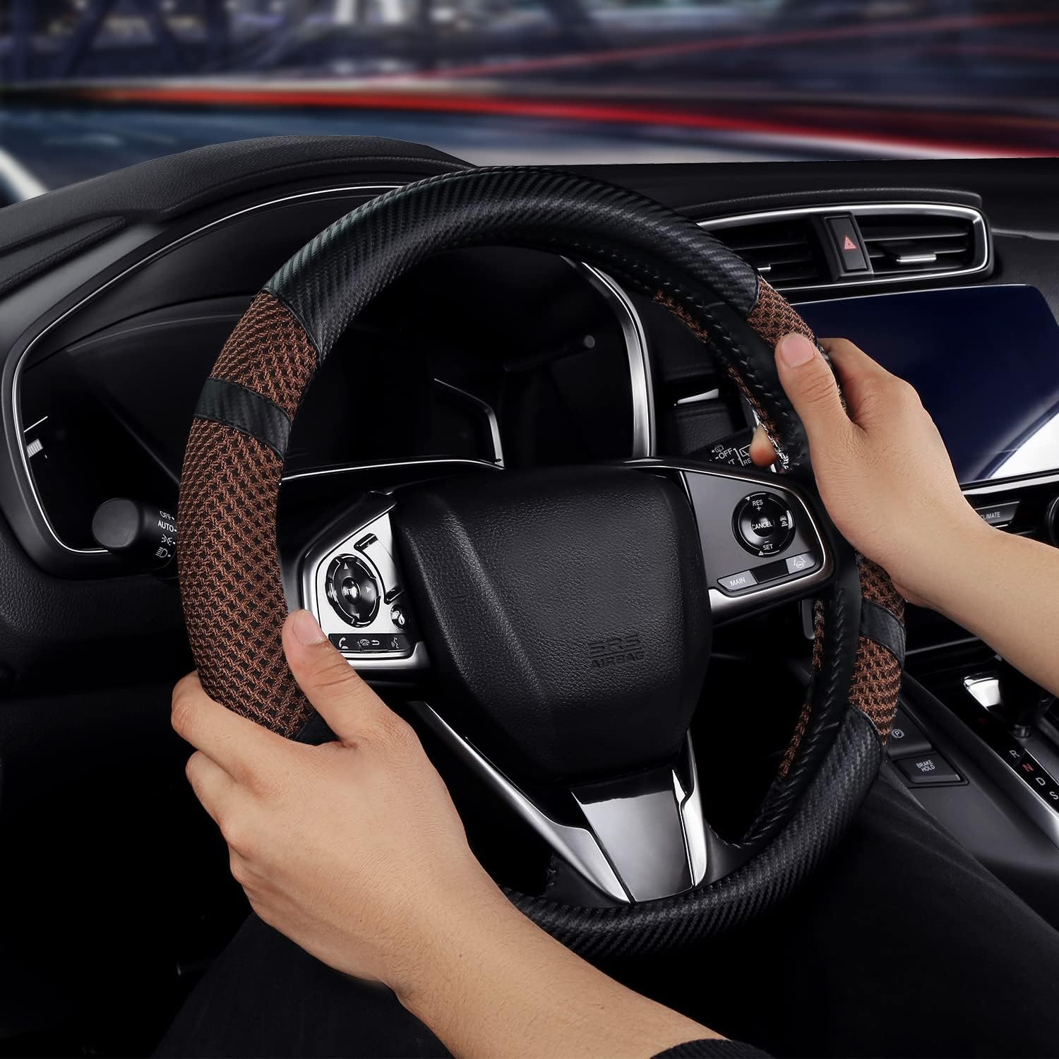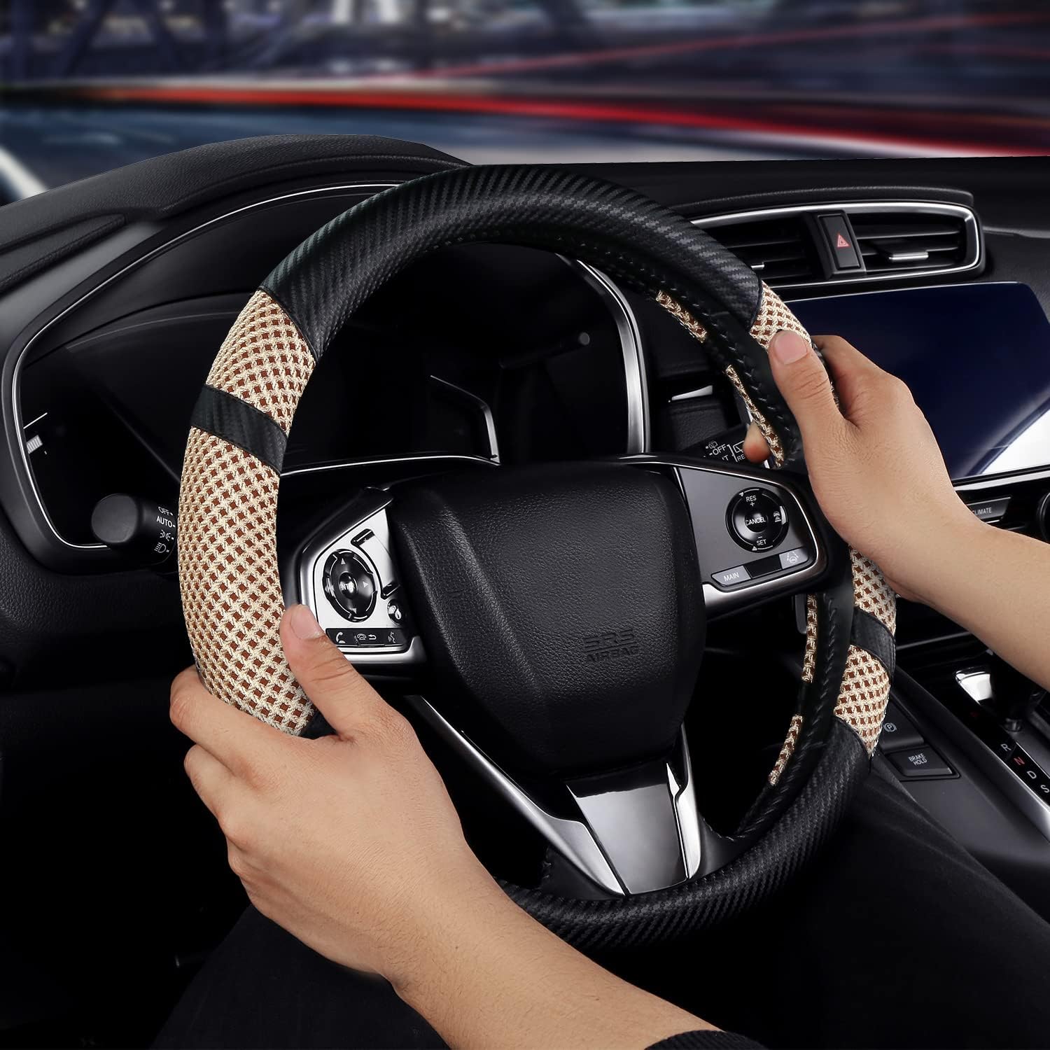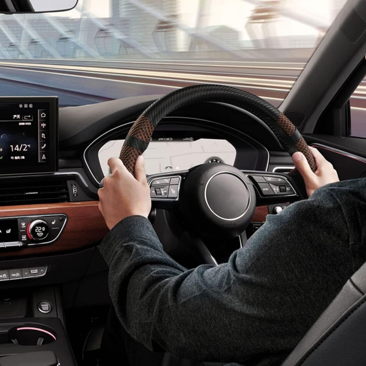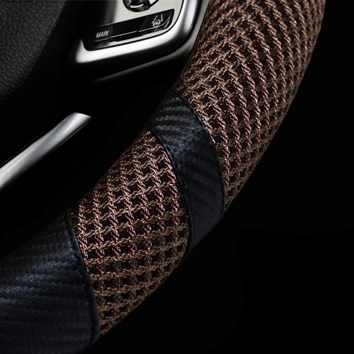 BOKIN Carbon Fiber Steering Wheel Cover, Universal 14.5-15 inch, Auto Car Microfiber Leather, Breathable Ice Silk Steering Wheel Protector, Cool in Summer and Warm in Winter, Black