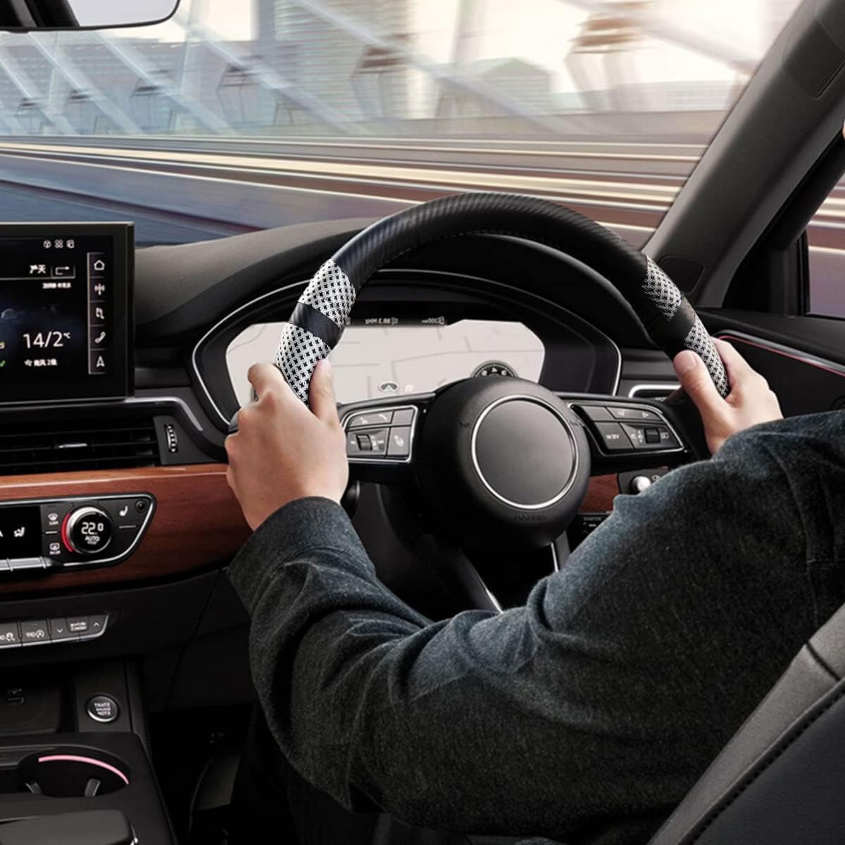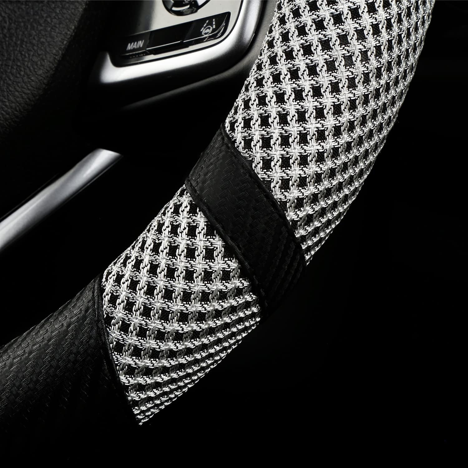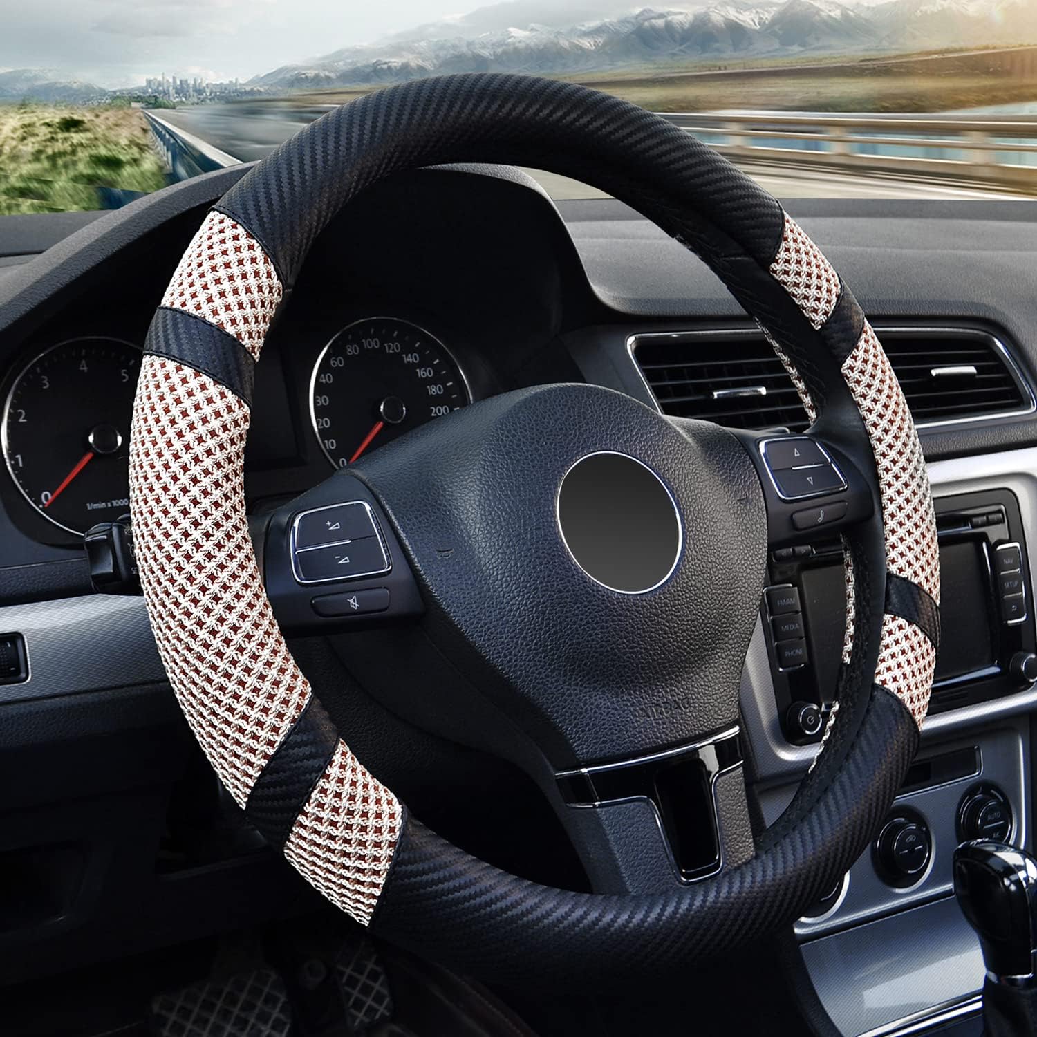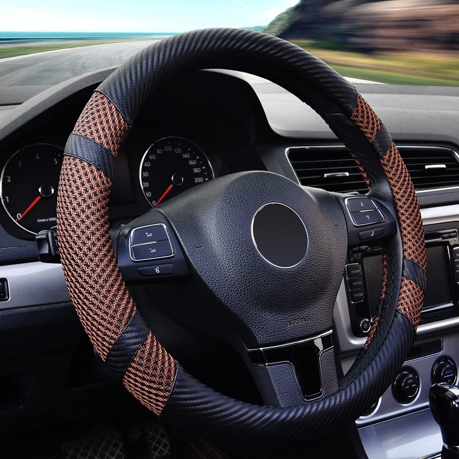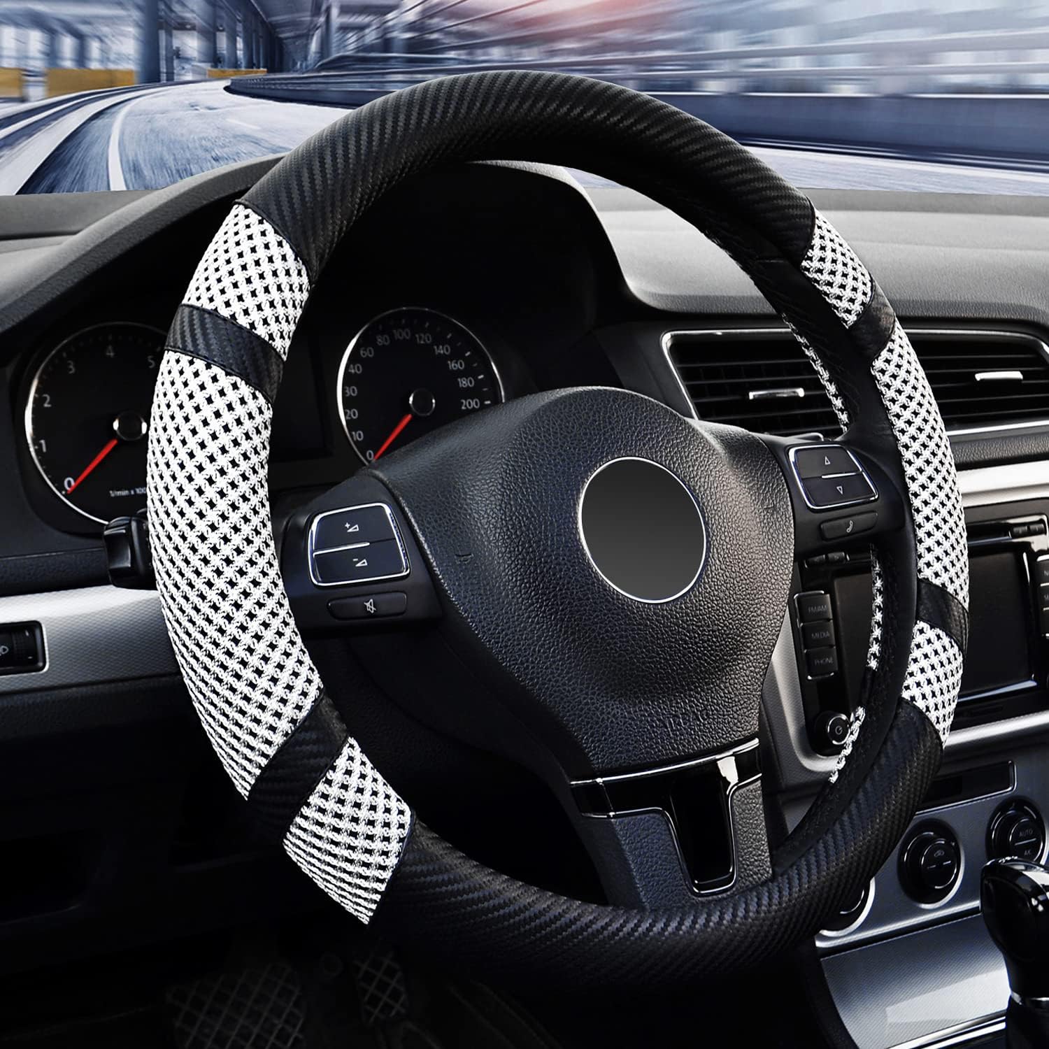 BOKIN Carbon Fiber Steering Wheel Cover, Universal 14.5-15 inch, Auto Car Microfiber Leather, Breathable Ice Silk Steering Wheel Protector, Cool in Summer and Warm in Winter, Black