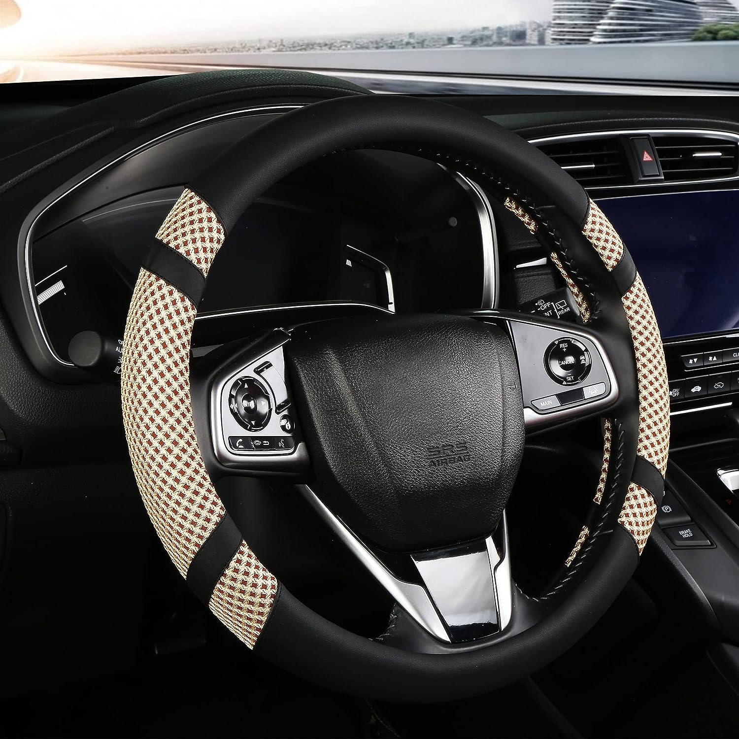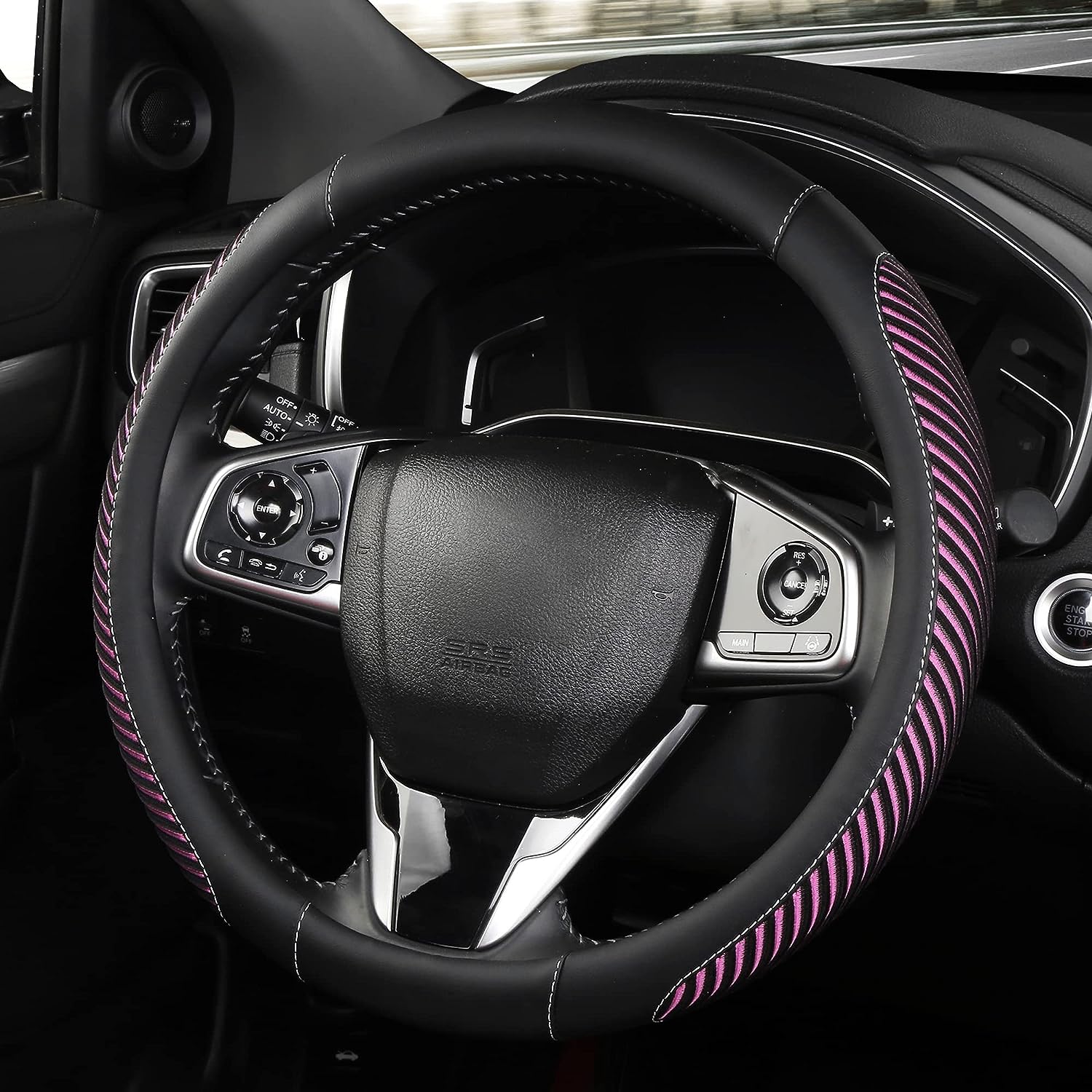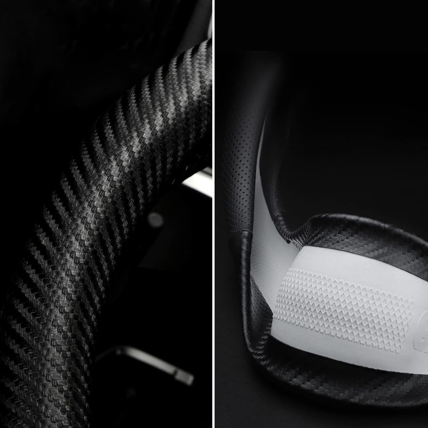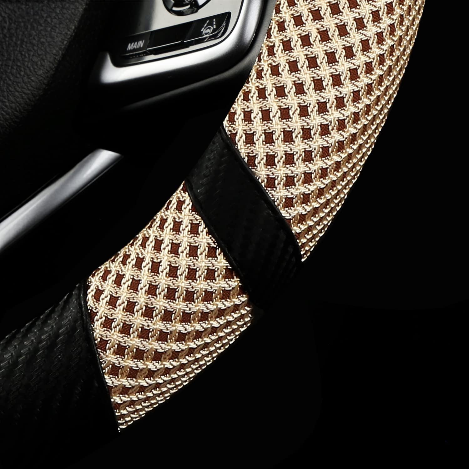 BOKIN Carbon Fiber Steering Wheel Cover, Universal 14.5-15 inch, Auto Car Microfiber Leather, Breathable Ice Silk Steering Wheel Protector, Cool in Summer and Warm in Winter, Black