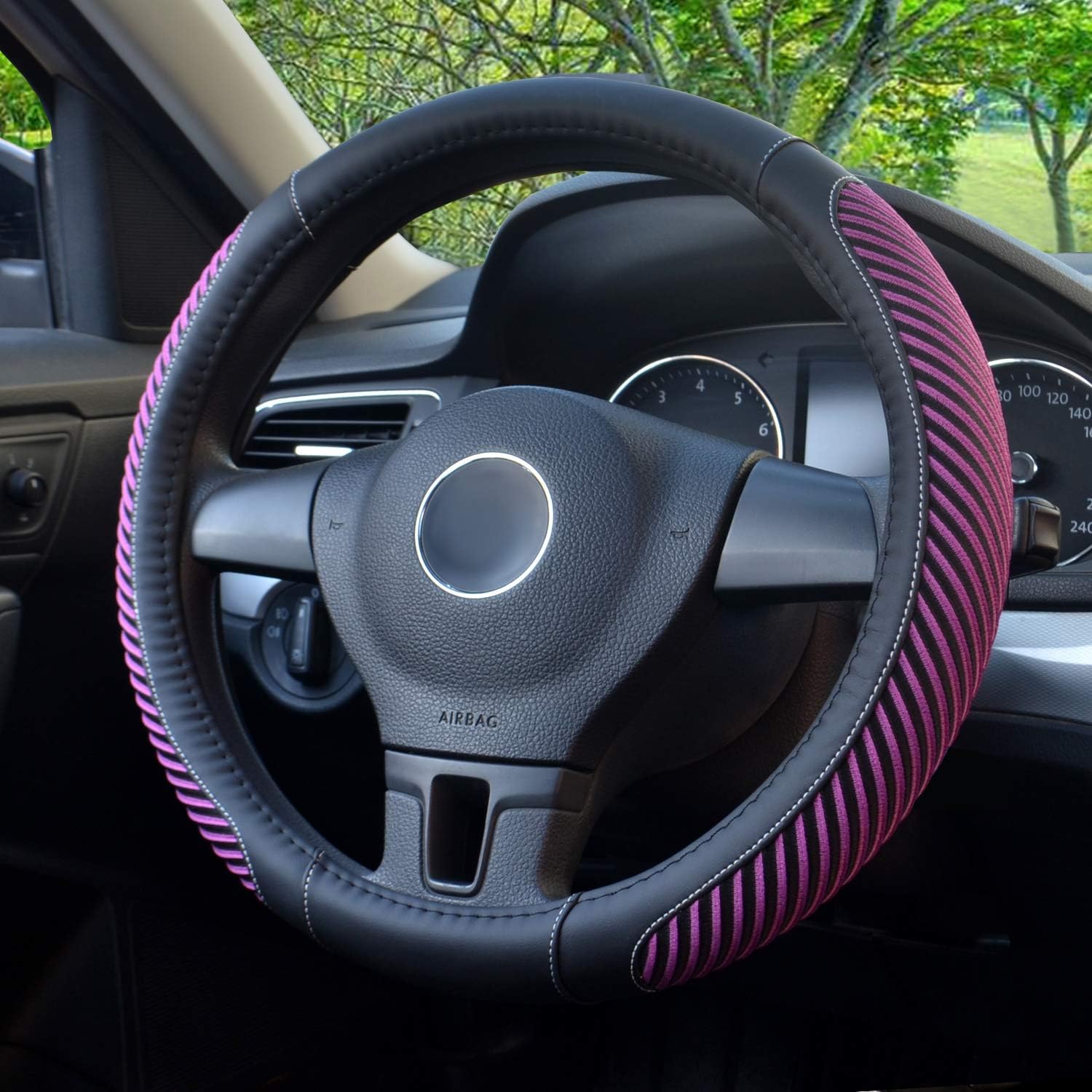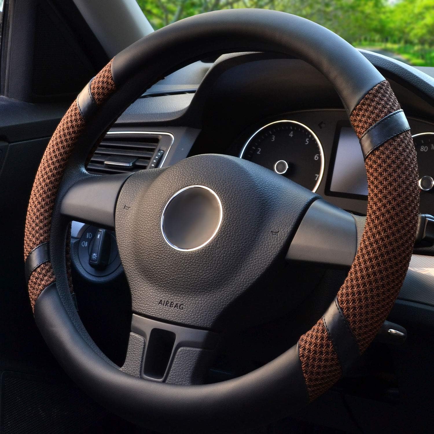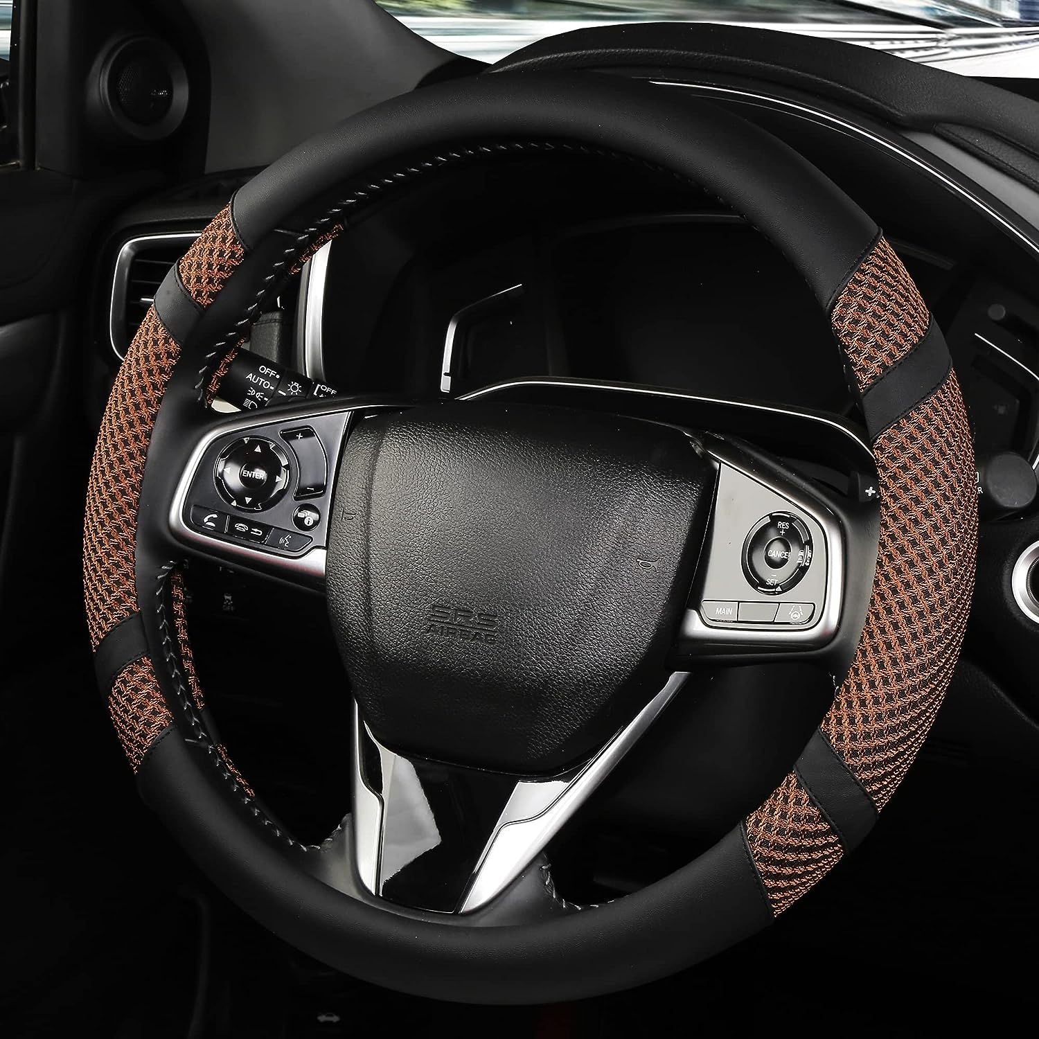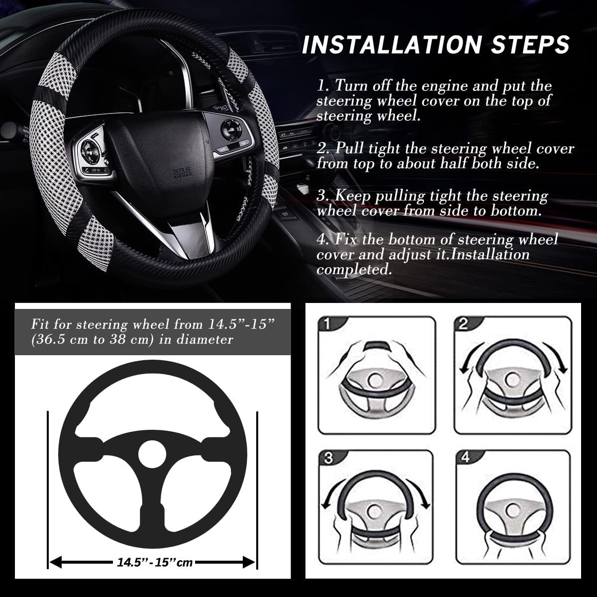 • The Wheel cover made of Carbon Fiber microfiber leather and breathable cloth mesh, healthy and eco-friendly, bring you a comfortable touch and feel. Warm in winter and cool in summer.