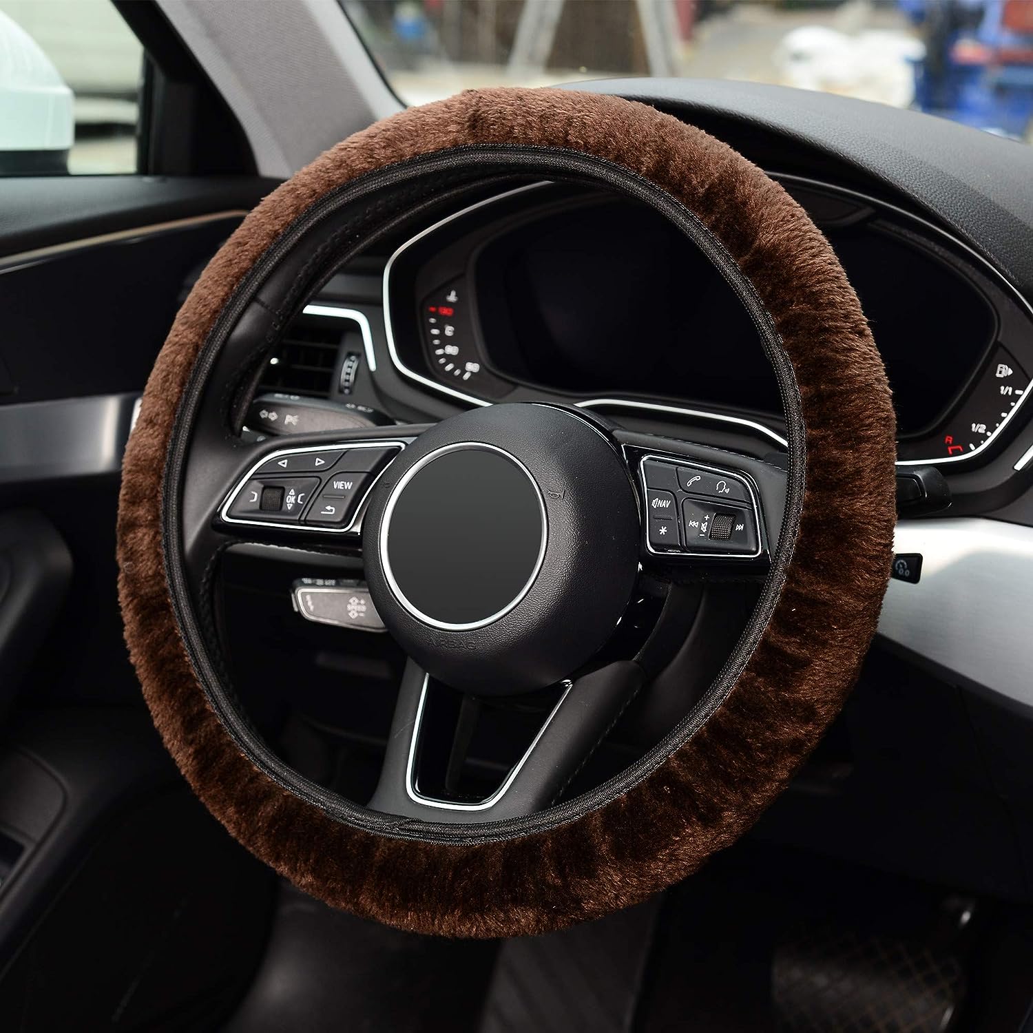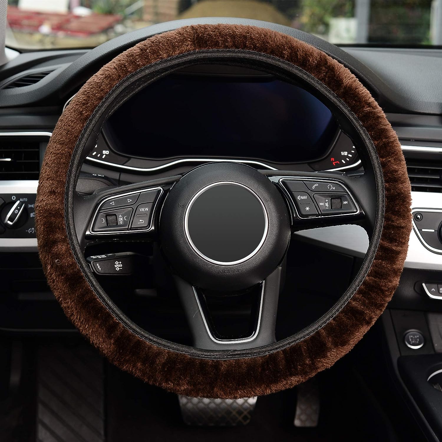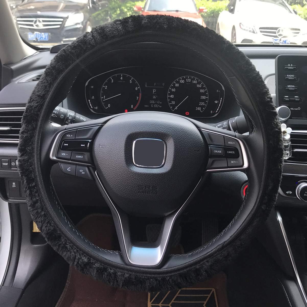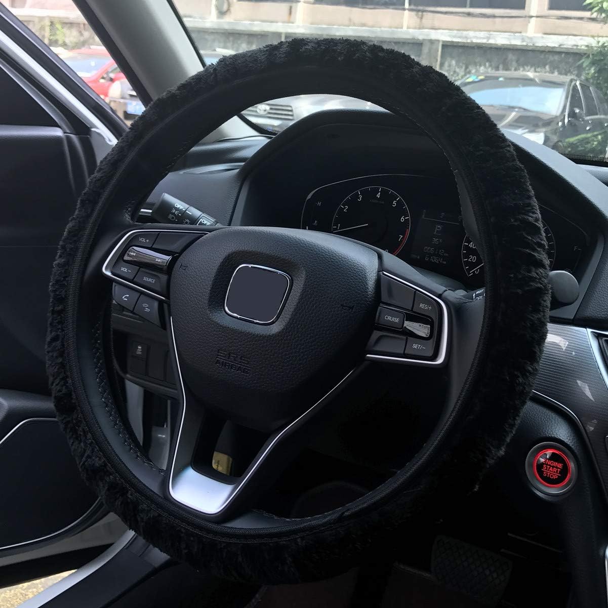 KAFEEK Elastic Long Microfiber Plush Steering Wheel Cover for Winter Warm, Universal 15 inch, Anti-Slip, Odorless, Black