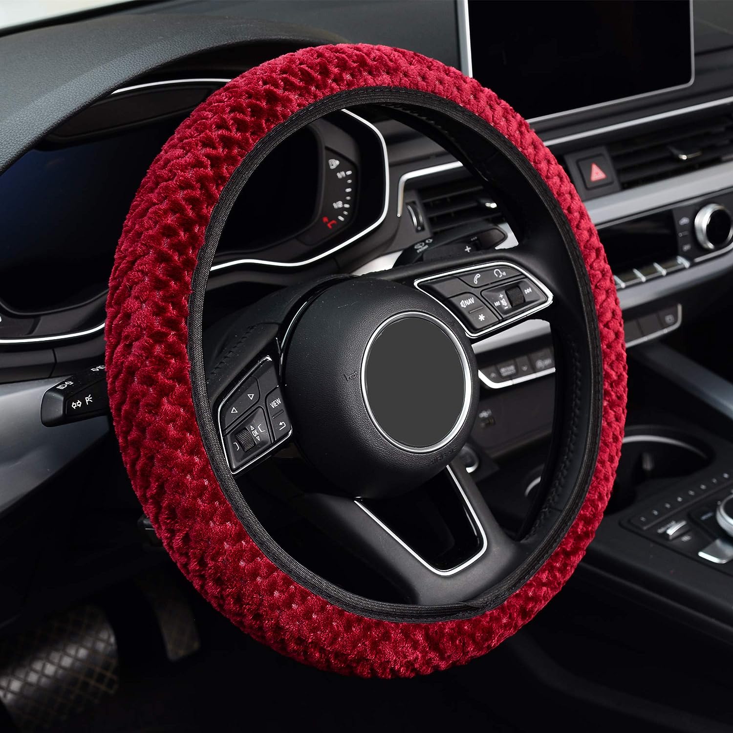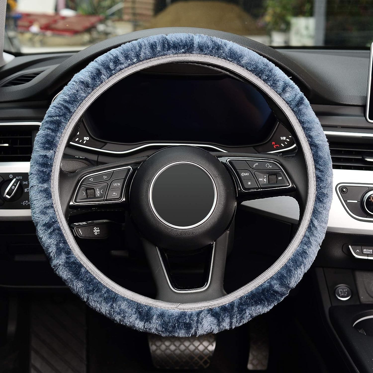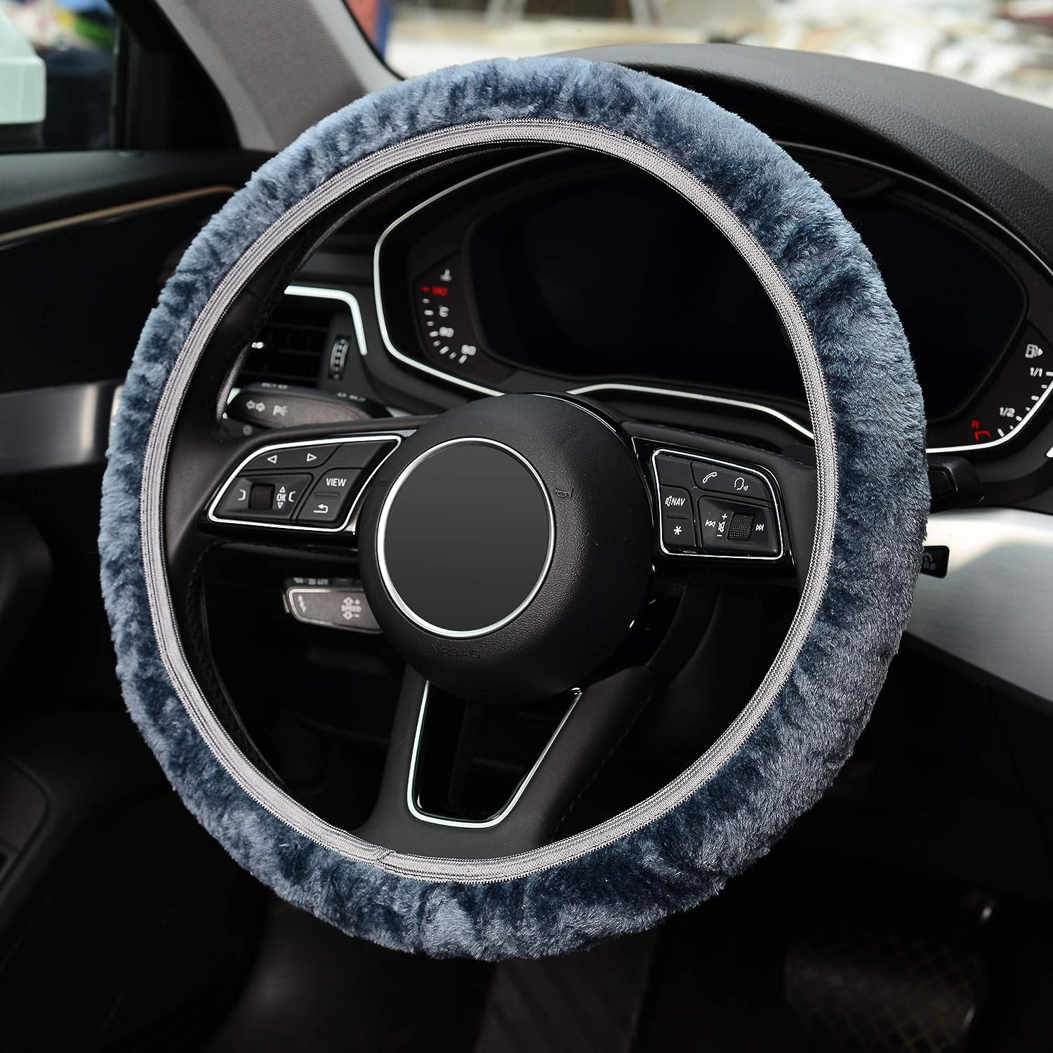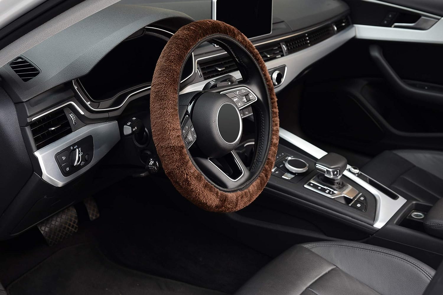 KAFEEK Elastic Long Microfiber Plush Steering Wheel Cover for Winter Warm, Universal 15 inch, Anti-Slip, Odorless, Black