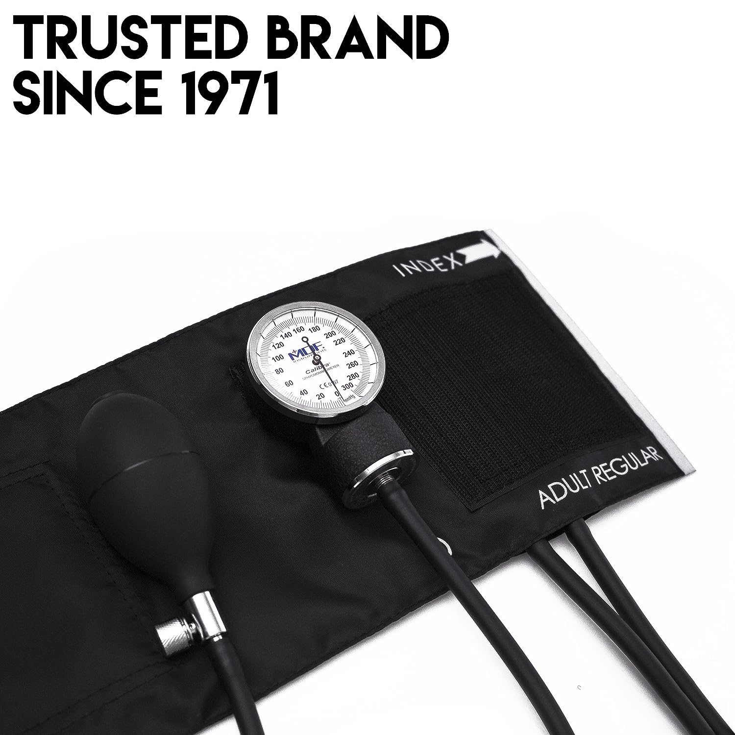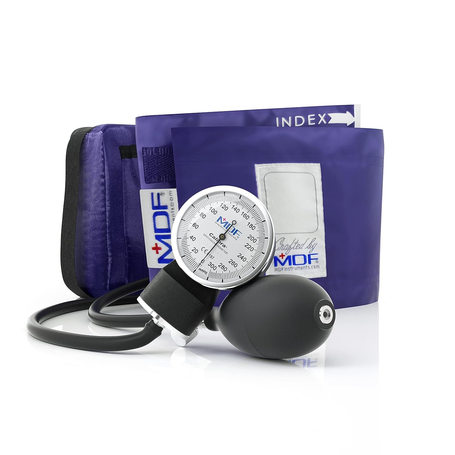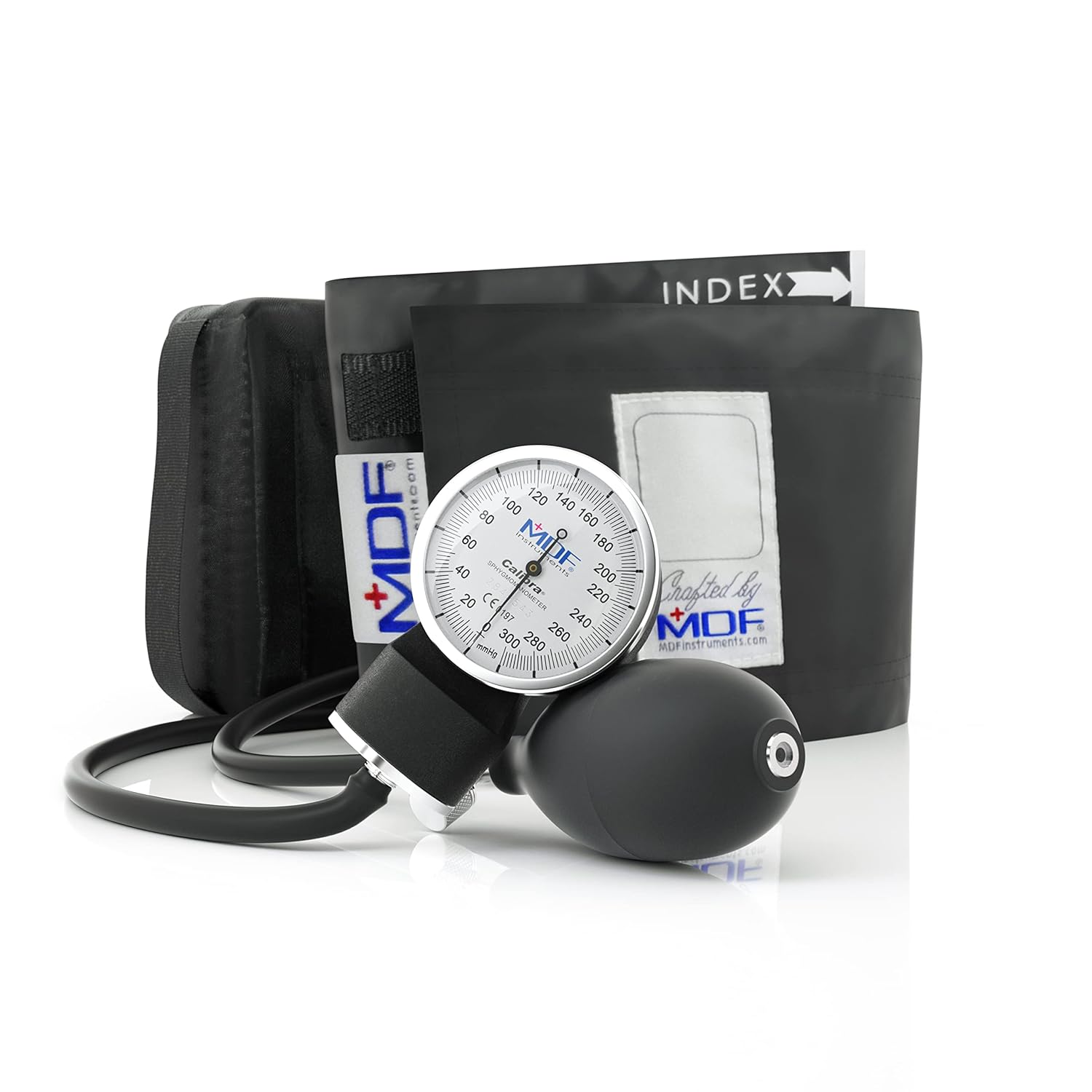 MDF® Calibra Aneroid Premium Professional Sphygmomanometer, Blood Pressure Monitor with Adult Cuff & Carrying Case, Lifetime Calibration, White Dial, Black Cuff, MDF808M11