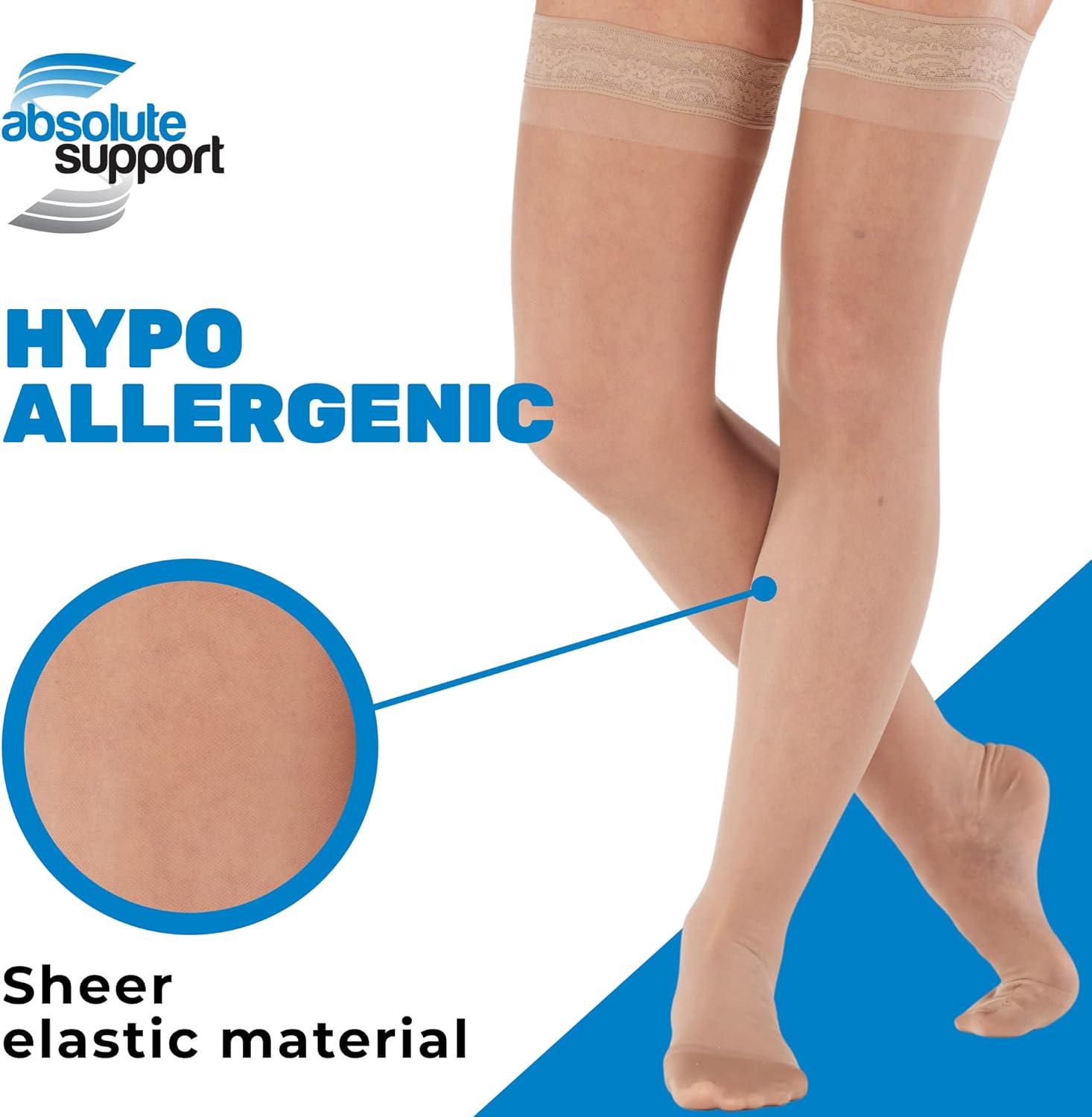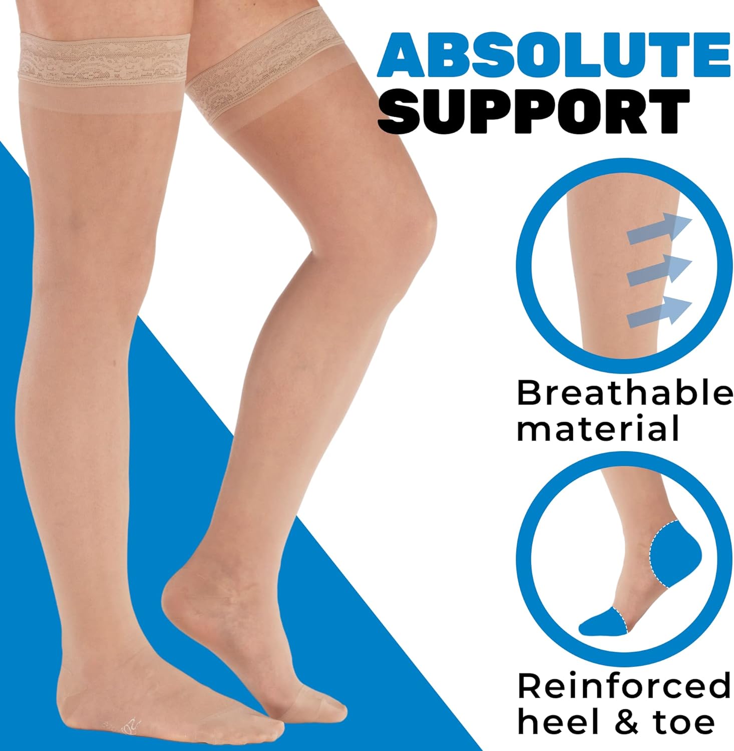 ABSOLUTE SUPPORT Made in USA - Thigh Hi Compression Socks for Women Circulation 15-20 mmHg Work Travel Airplane Office - Compression Hose for Women 15-20mmhg with Silicone Border Black, Large