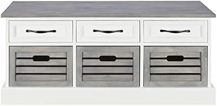 BOWERY HILL 6 Drawer Entryway Storage Cubby Bench in White and Gray