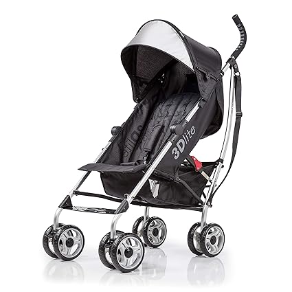 3Dlite Convenience Stroller, Black Š—– Lightweight, with Aluminum Frame, Large Seat Area, Mesh Siding, 4 Position Recline, Extra Large Storage Basket Š—– for Travel