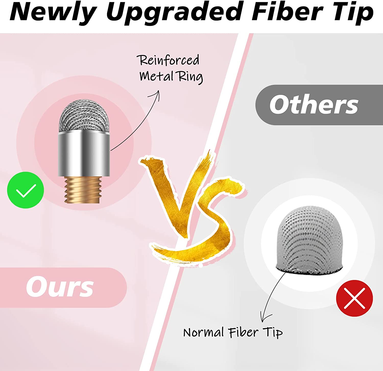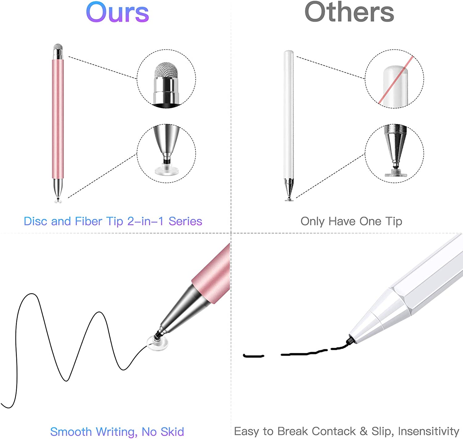 • 【Replaceable Tips】 - The two styluses come with 2 Spare disc tips(diameter:0.27" )and 2 Spare fiber tip(diameter:0.24" ).Tips of both sides are replaceable and it's easy to be done in second without tool. We promise 30 days money-back and 12-months guaranty, contact us freely for any problems.