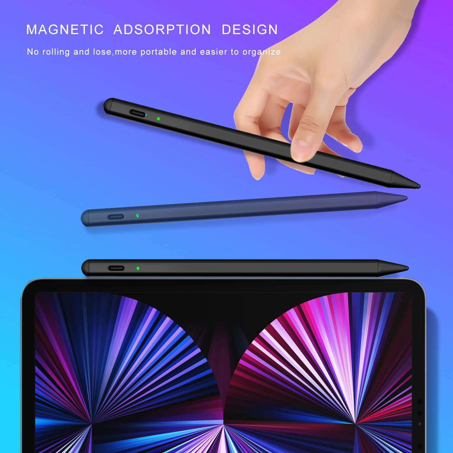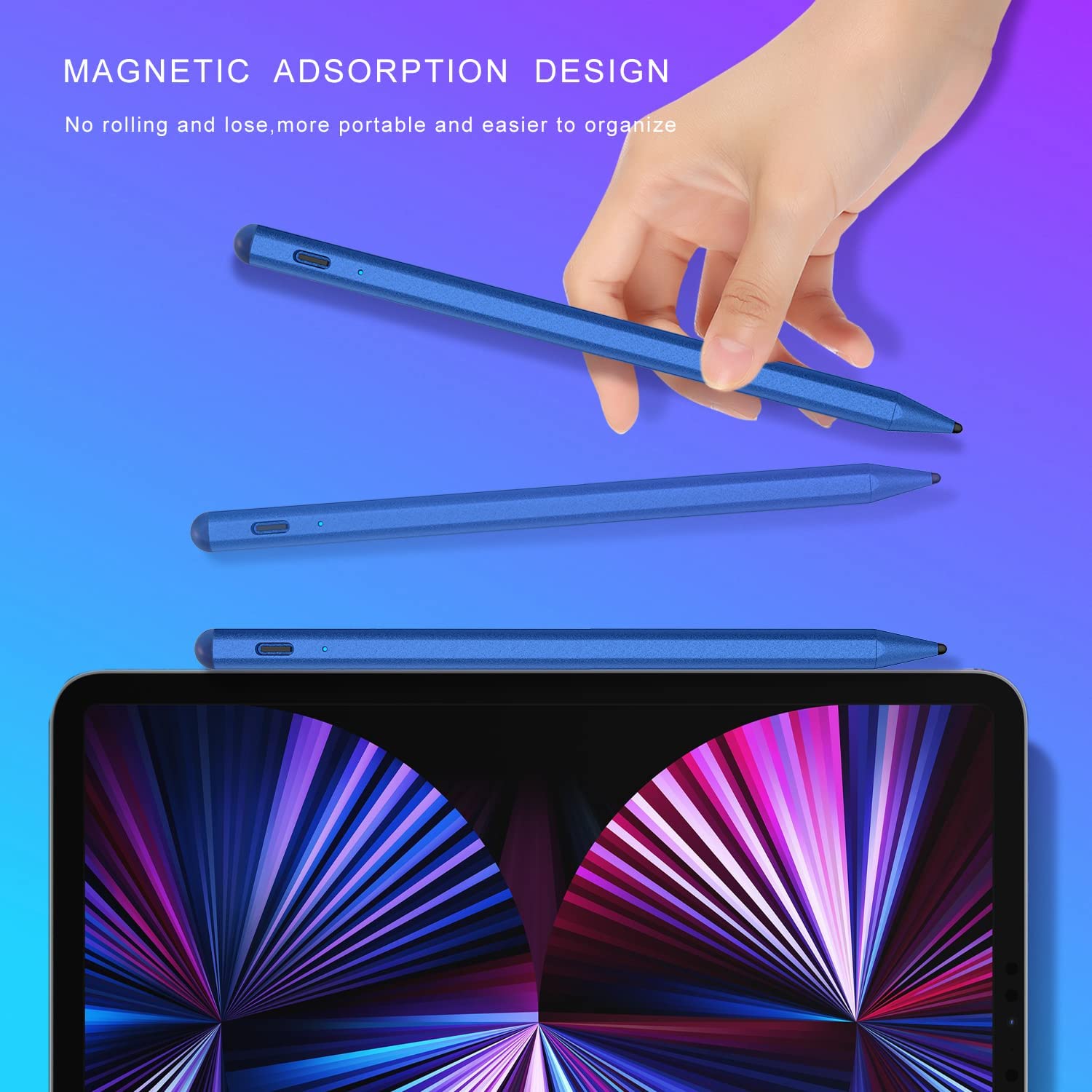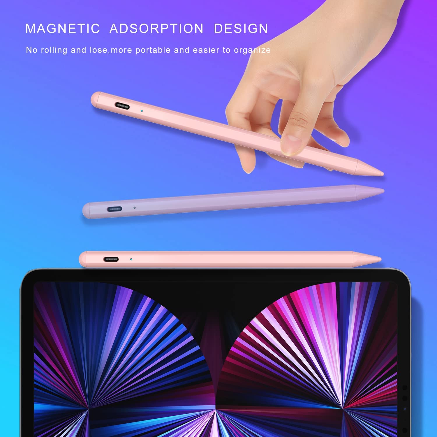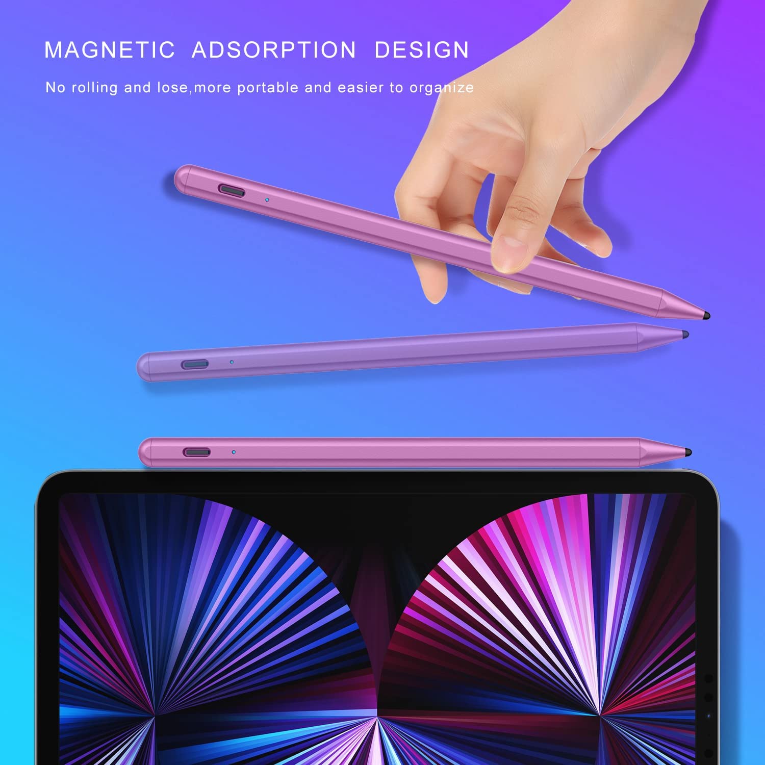 • Palm Rejection and Magnetic Design: The active Stylus Pencil with palm rejection,You can put your hand comfortably on the screen when drawing or writing, no need to wear gloves for more convenient writing or drawing. The Stylus iPad Pro Pen is magnetically designed, so it won't roll and be lost while resting, making it more convenient to carry and organize.