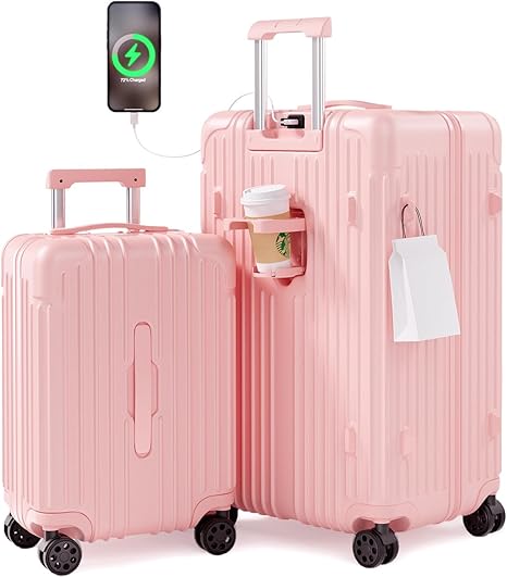 Krute Luggage Sets 2 Piece Suitcase PC+ABS Hardside Double Spinner Wheels TSA Lock Carry On Luggage 20+28 Inch (Pink)