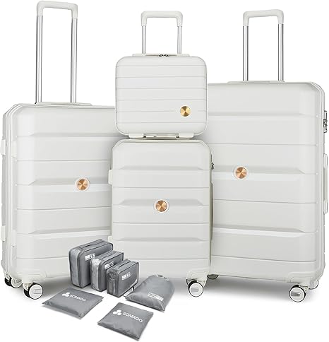 Somago Luggage Sets and Packing Cube Travel Set Lightweight Hardside Polypropylene Suitcases with Double Spinner Wheels and TSA Lock, Creamy White