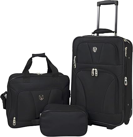 Travelers Club Bowman Expandable Luggage, Black, 3-Piece Set (Dopp/Tote/20)