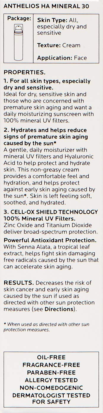La Roche-Posay Anthelios 100% Mineral Sunscreen Moisturizer with Hyaluronic Acid, Broad Spectrum SPF 30 Face Sunscreen with Zinc Oxide & Titanium Dioxide, 1.7 fl. oz.