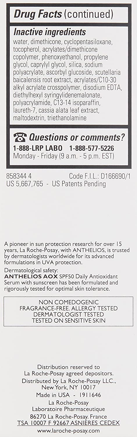 La Roche-Posay Anthelios AOX Daily Antioxidant Serum with SPF, Face Moisturizer with Sunscreen and Vitamin C & E, Oil Free Face Sunscreen for Sensitive Skin, Moisturizing Sun Protection