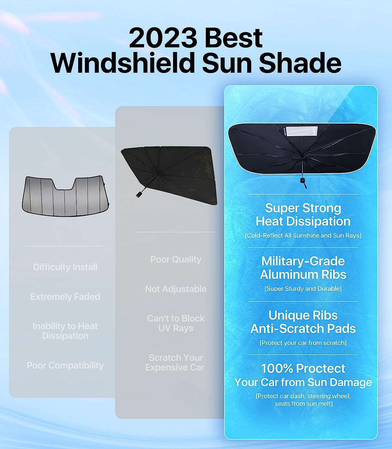 (2023 Upgraded) andobil Car Windshield Sun Shade Umbrella -Super Heat Insulation Protection- Foldable Sunshade for Car Windshield -Car Accessories Interior -Easy to Use-Out Keeps Car Cool -Medium