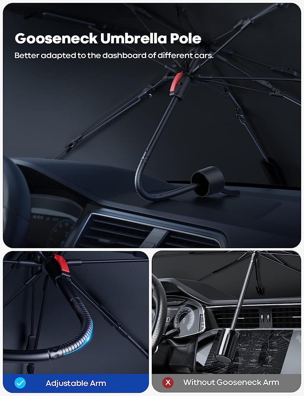 • 【 Anti-Puncture System】 This windshield visor umbrella cloth at the end of the umbrella tip has an anti-puncture bag, which prevents the umbrella tip from coming out of the umbrella cloth and thus scratching the interior and the windshield.