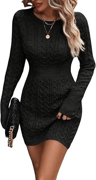 GORGLITTER Women's Cable Knit Sweater Dress Long Sleeve Knit Winter Dresses Crewneck Mini Pencil Dresses