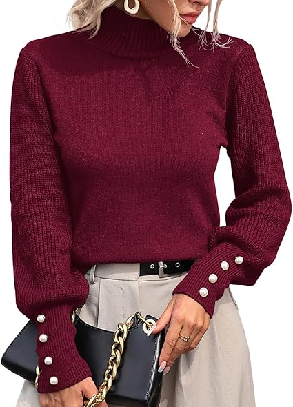 Upopby Women's Fall Winter Turtleneck Sweaters for Women Lantern Sleeve Knitted Pullover Sweater Jumper Tops