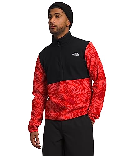 THE NORTH FACE Men's Alpine Polartec 100 ½ Zip, Fiery Red Crosshatch Camo Print/TNF Black, Medium
