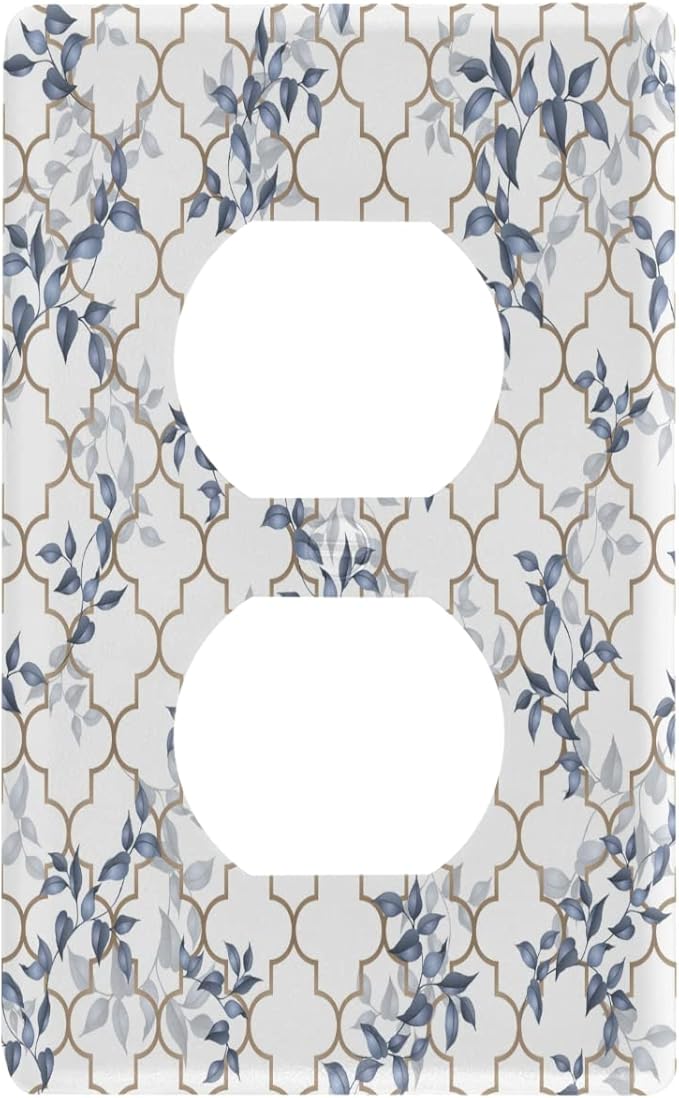 Leaves Gold Lattice Duplex Wall Plate Moroccan Floral Switch Plate Electrical Outlet Covers 2 Gang Receptacle Plug Cover Home Decor H4.53 xL2.76 inch
