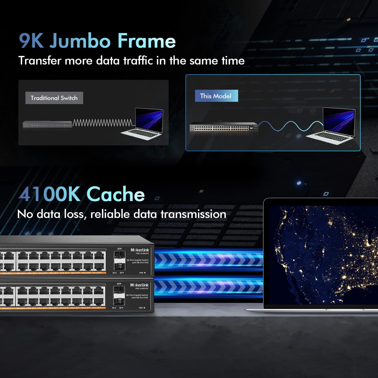 MokerLink 48 Port PoE Gigabit Switch with 2 Gigabit SFP, 800W IEEE802.3af/at AI Detection, Metal Rackmount Unmanaged Plug and Play Ethernet Switch