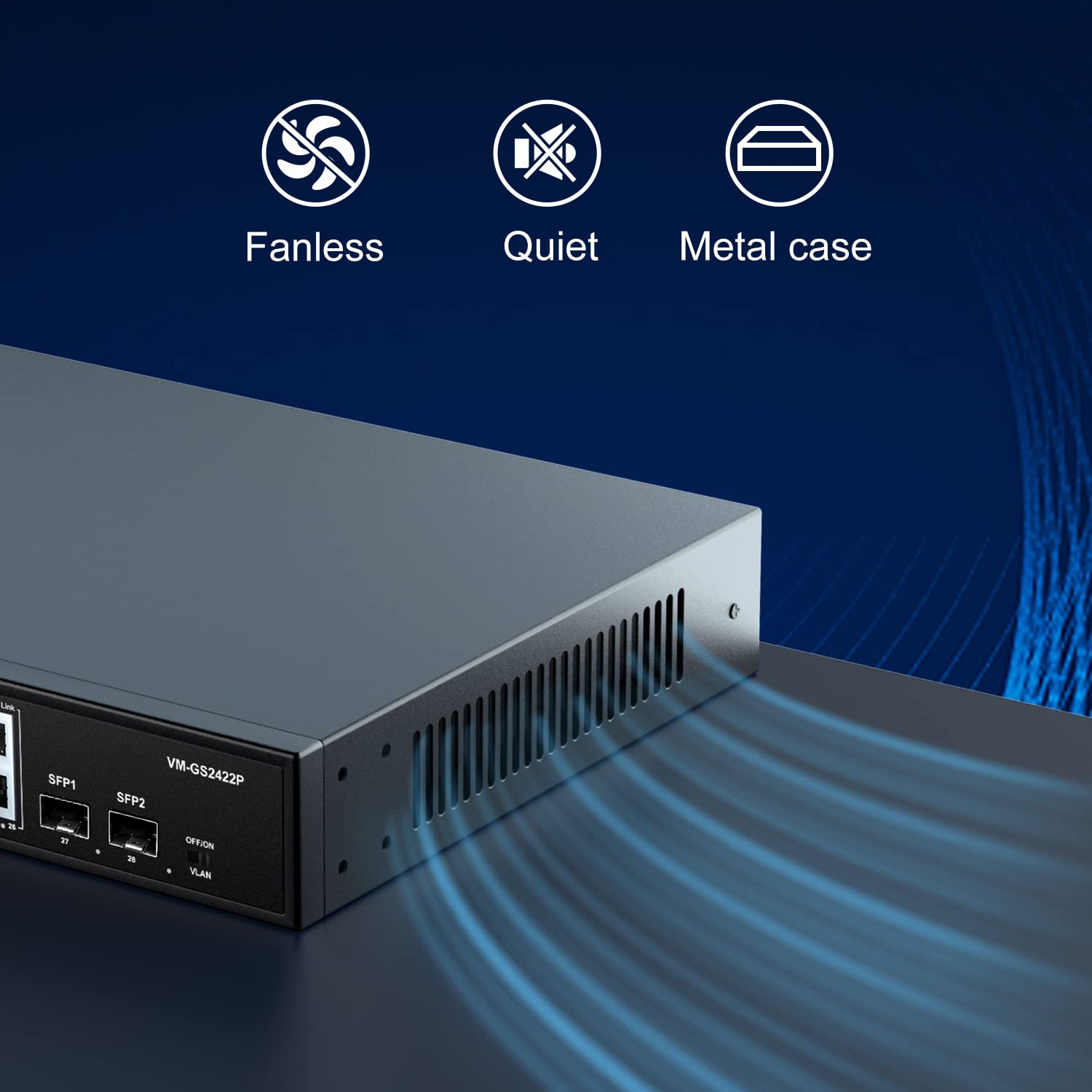 • Support IEEE 802.3af/at, each port provides up to 30W of power and a total PoE power budget of 120W. Widely used in HD IP cameras, IP phones, wireless access points, computer network equipment and other scenarios. 【Please note: not support passive PoE.】