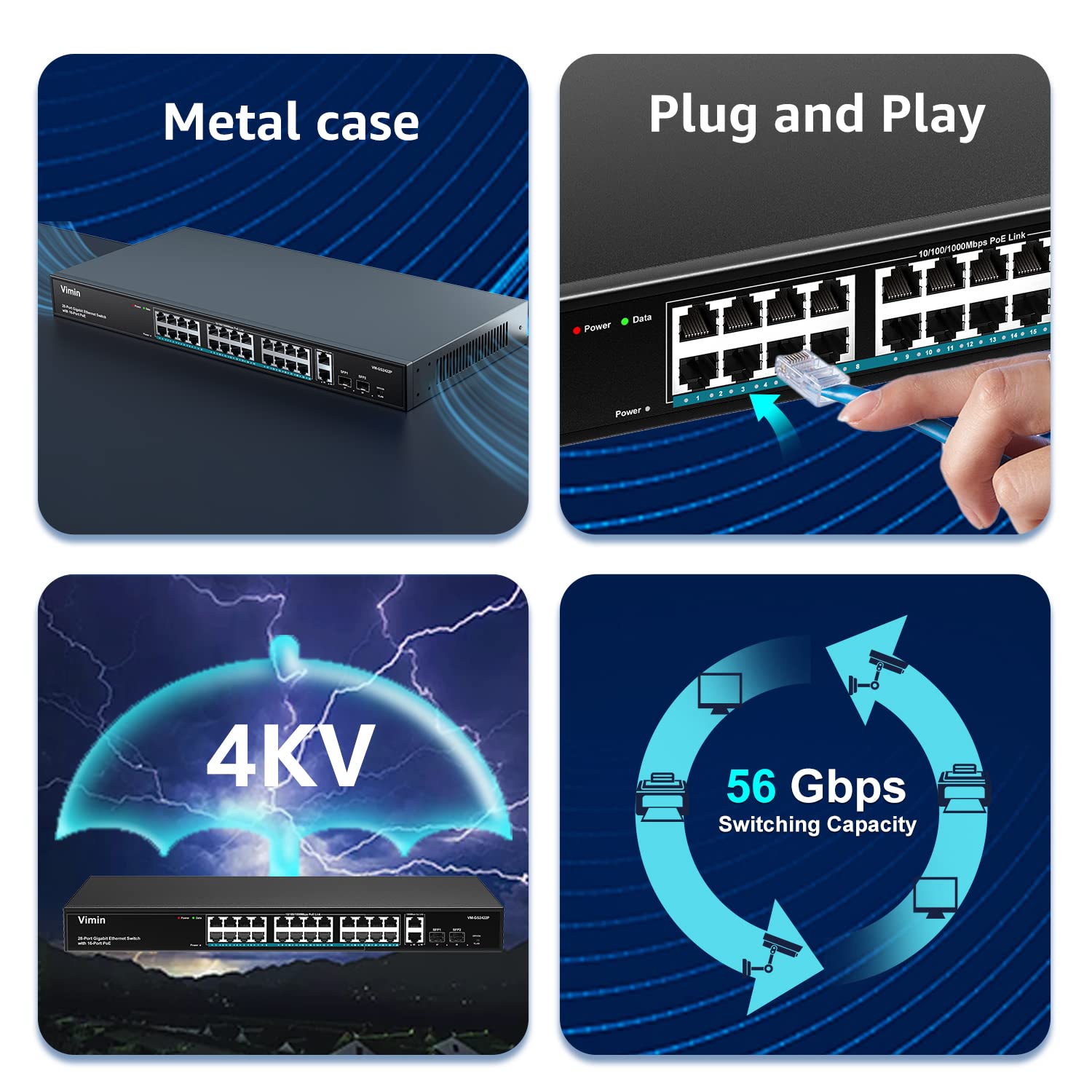 • Every VIMIN PoE switch is rigorously tested for reliability, quality and performance. We provide a one-year warranty and lifetime technical support for the entire product.
