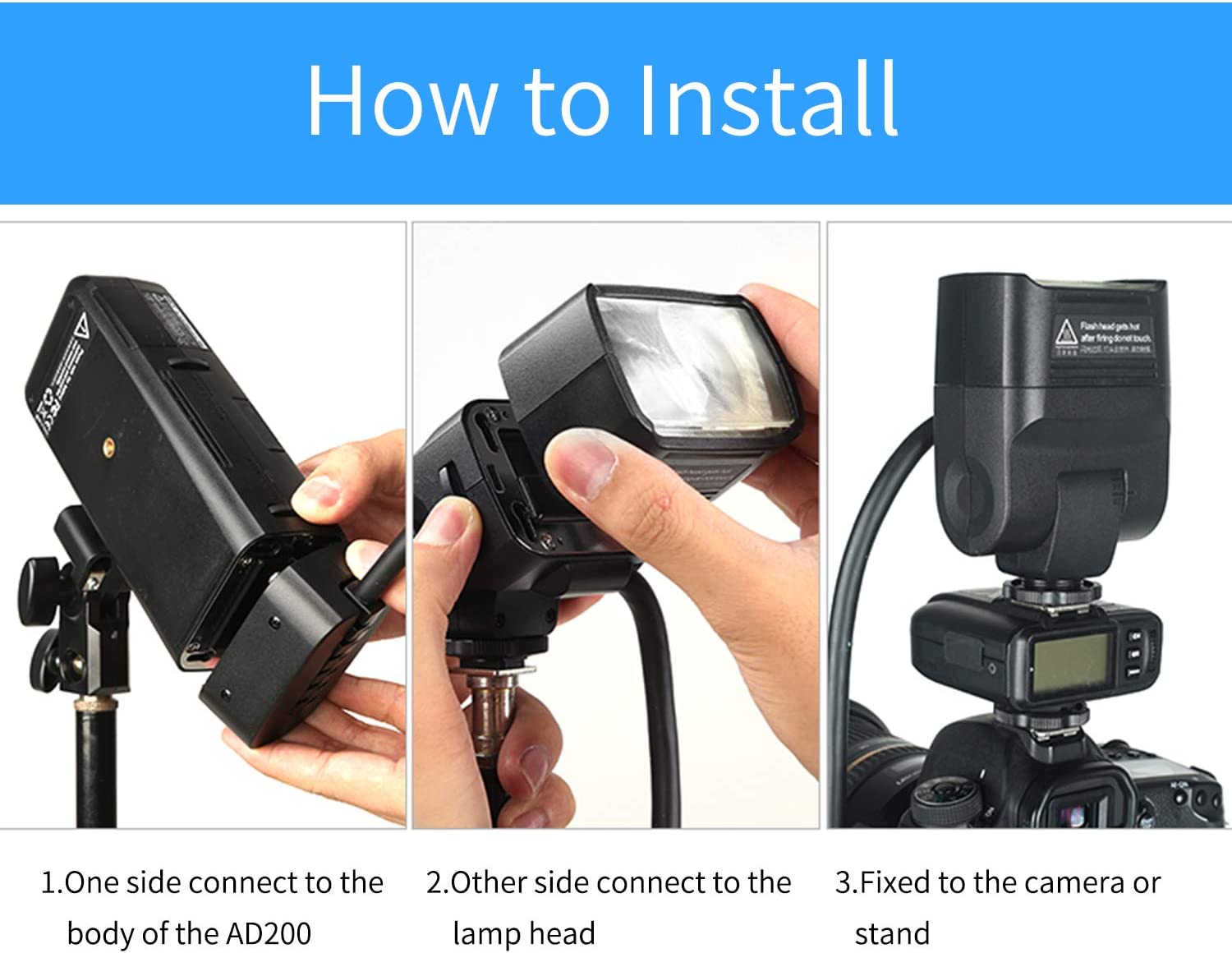 • Godox EC200 Flash Light Lamp Head Allows You Connect the AD200/AD200Pro Flash Head and Body Separately, and enjoy the AD200 / AD200Pro Flash Features on the Body which hold on A Shoulder Pocket Bag.