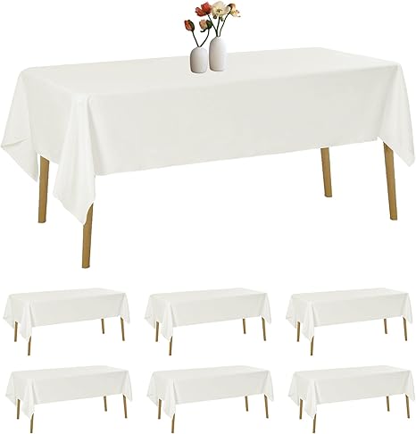6 Pack Rectangle Tablecloth 60 x 120 Inches Ivory Table Cloth Stain and Wrinkle Resistant Washable Polyester Fabric Table Cover for Party, Wedding and Banquet Decoration