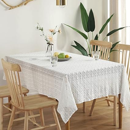 Bringsine Ultra-Thin and Lightweight Rustic Faux Tablecloth, Table Cloth Cover, for Dinner Parties, with Luxury Embroidered Floral Four Leaf Clover White(Rectangle/Oblong, 59 x 70 Inch)