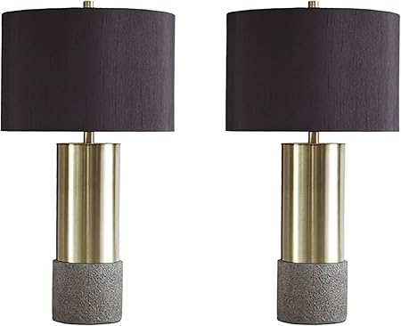 Signature Design by Ashley Jacek Modern Contemporary Table Lamp, 2 Count, Gray & Brass Finish