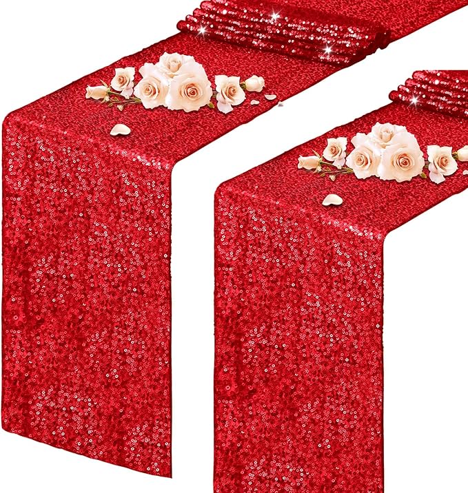 2 Packs Red Sequin Table Runners 12 x 108 Inch Glitter Dining Table Runner Sparkle Sequin Runners for Birthday Wedding Party Bridal & Baby Showers, Party Table Decorations